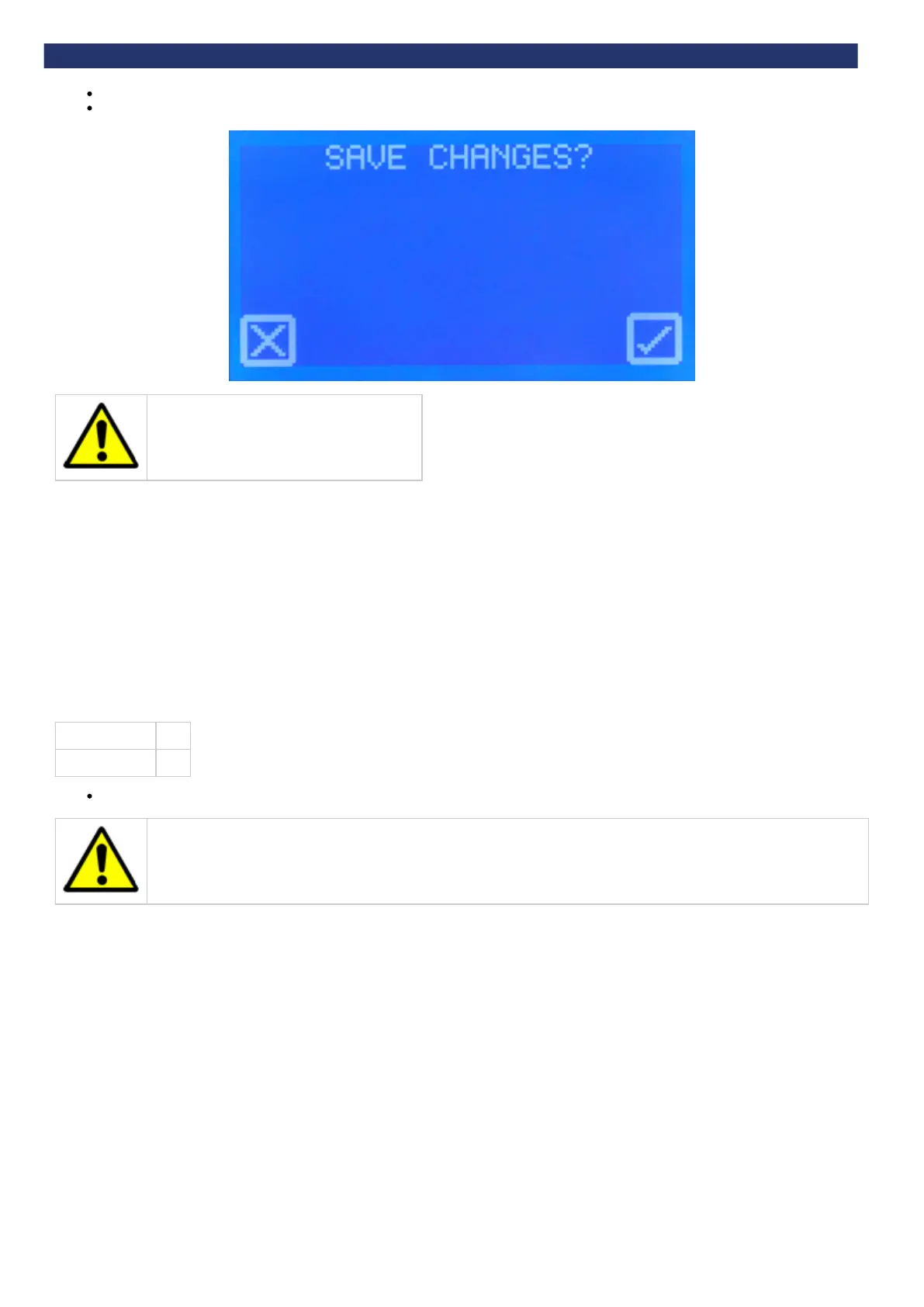 Touch the value to select the parameter. Use up and down arrows to alter the values.