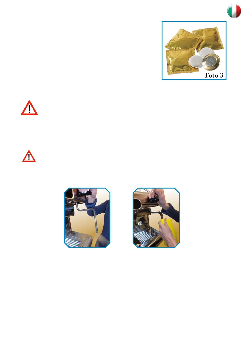provocare scottature. Non sganciare per nessun motivo il portafiltro dal gruppo, durante