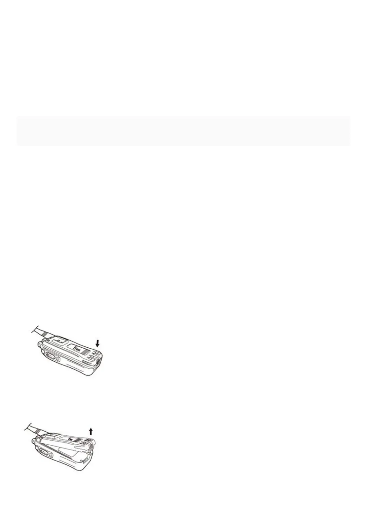 1. Press the battery pack behind the radio, push it in till you hear a “kada” sound, the battery pack will