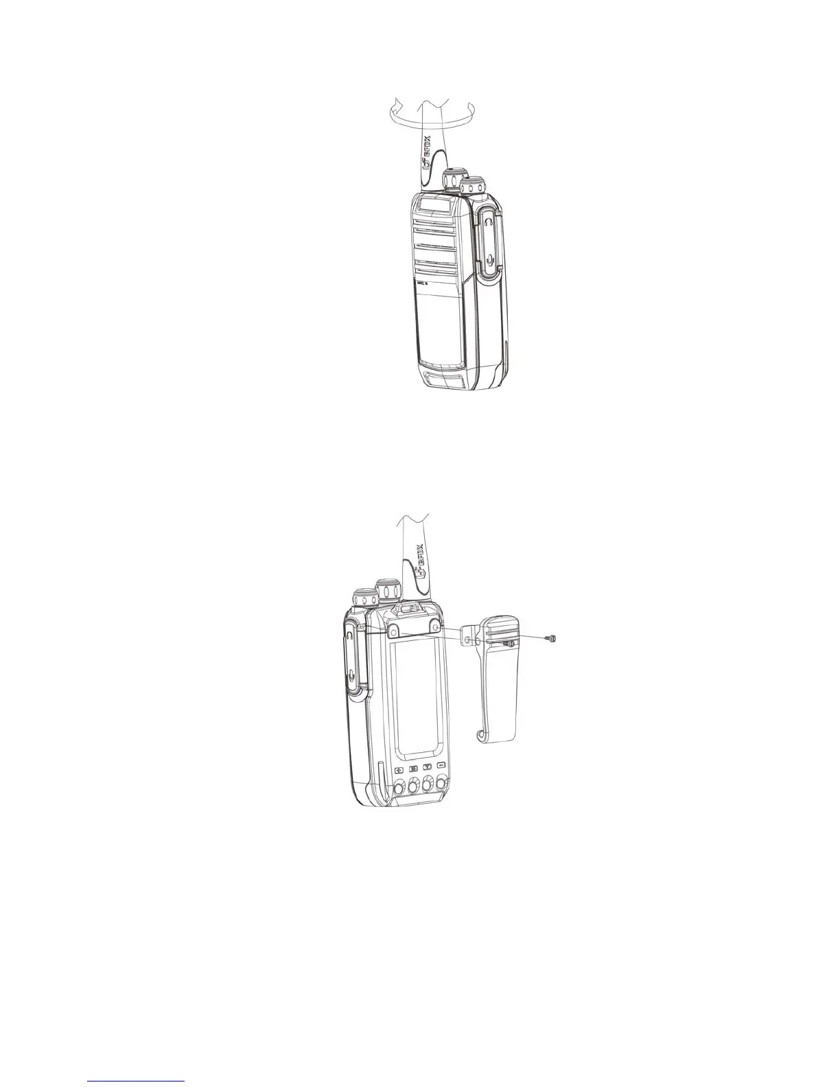 Attach the belt clip using the two supplied3*4mm binding screws.
