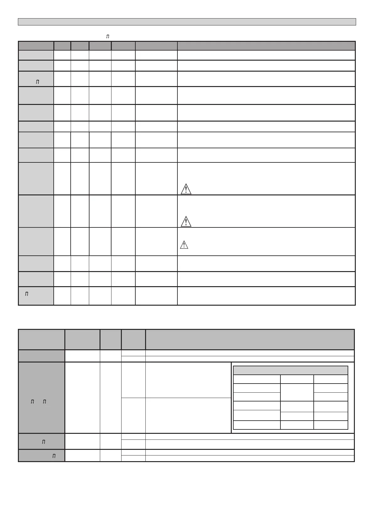 TABLE “A” PARAMETERS MENU - PARA