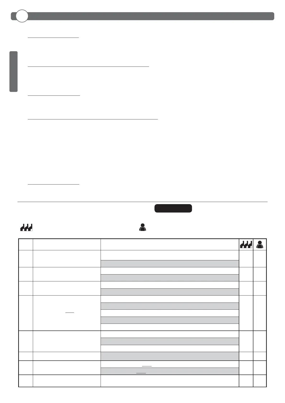 = valore del parametro impostato in fase di installazione: da indi-