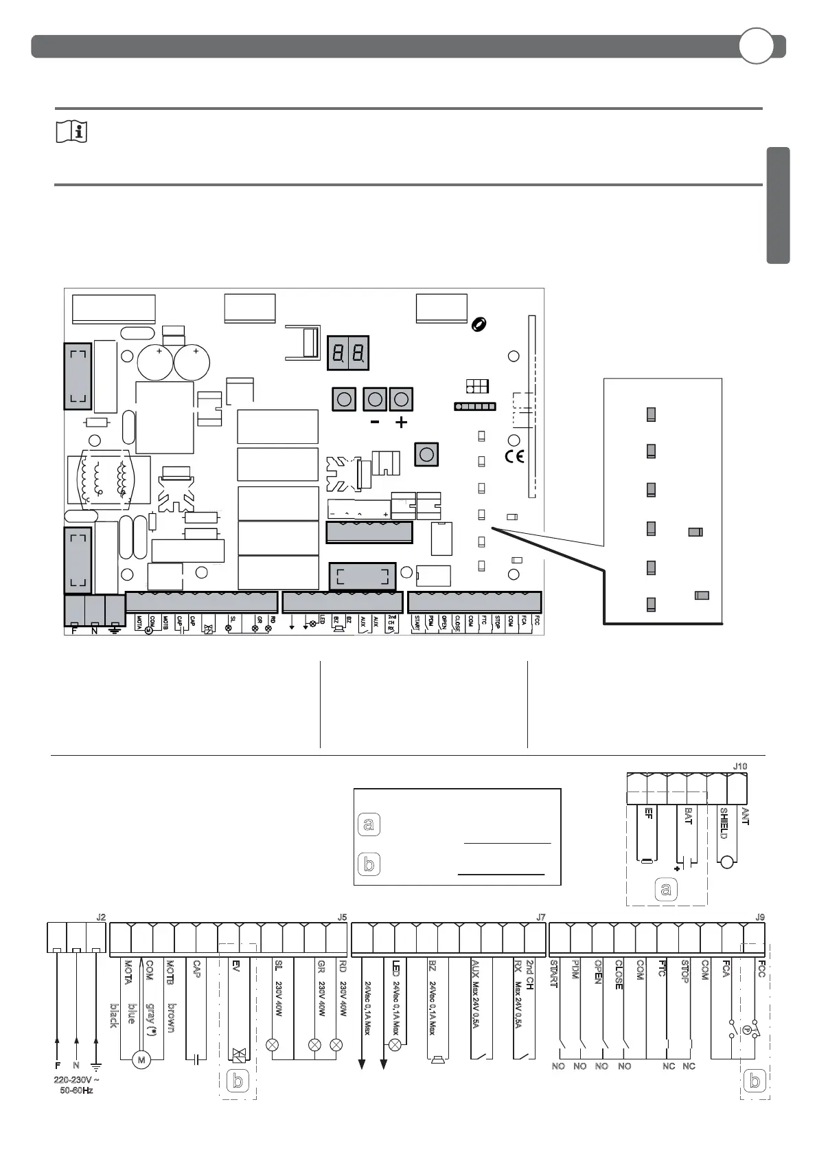 J2: Morsettiera alimentazione 230Vac
