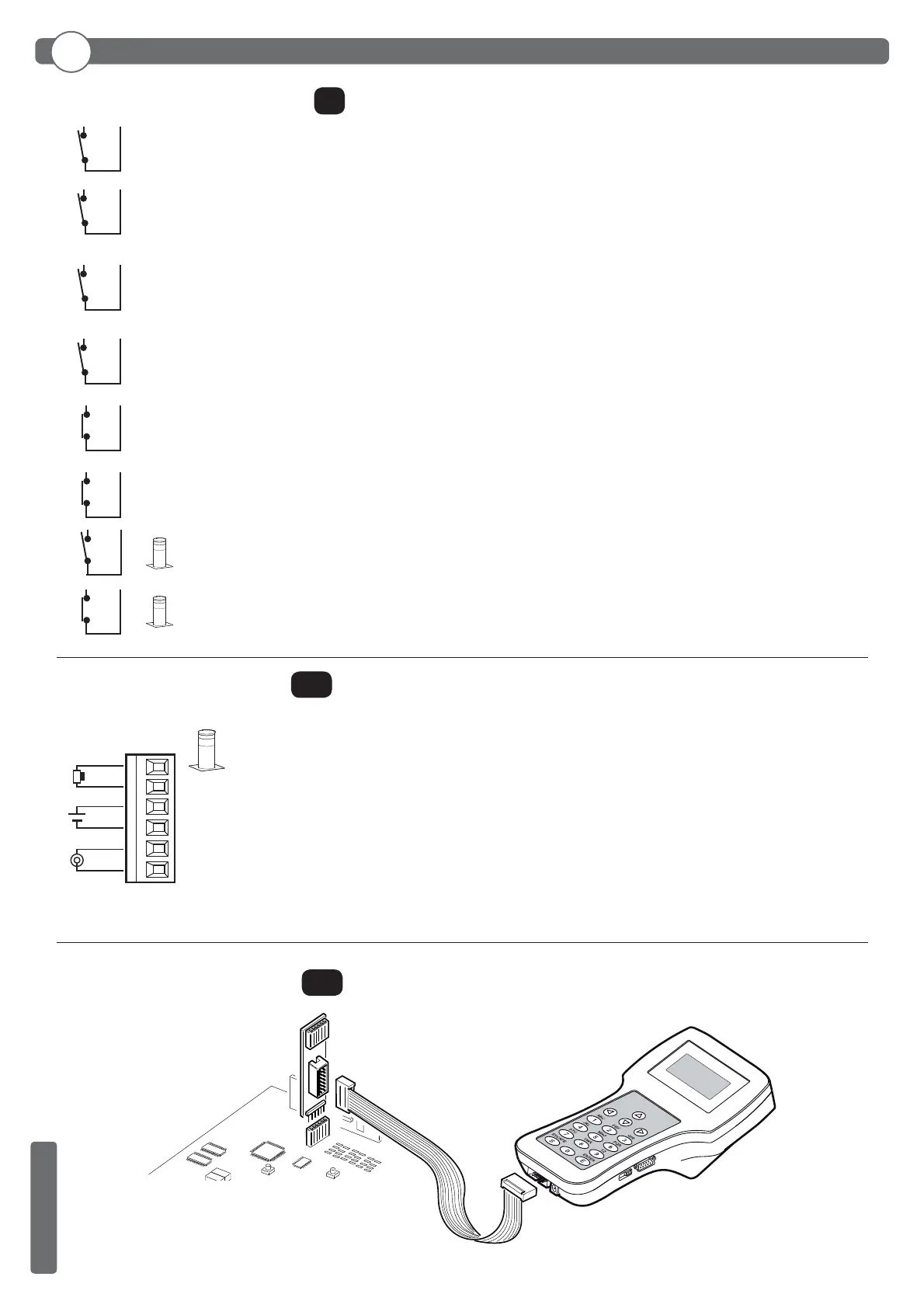 Entrada N.O. sólo de abertura. Manteniendo controlada esta entrada el automatismo efectuará la maniobra de apertura y efec-