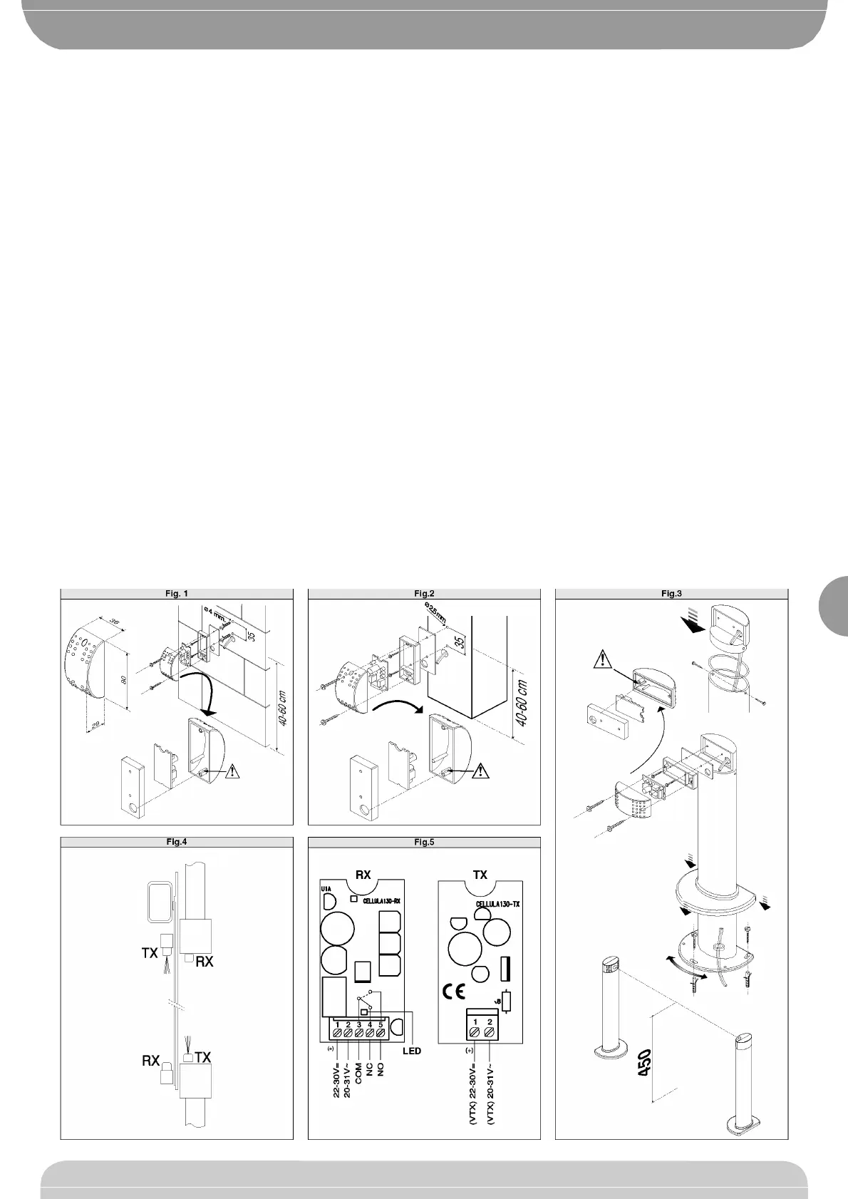 The photocells should be installed between 40 and 60 cm in