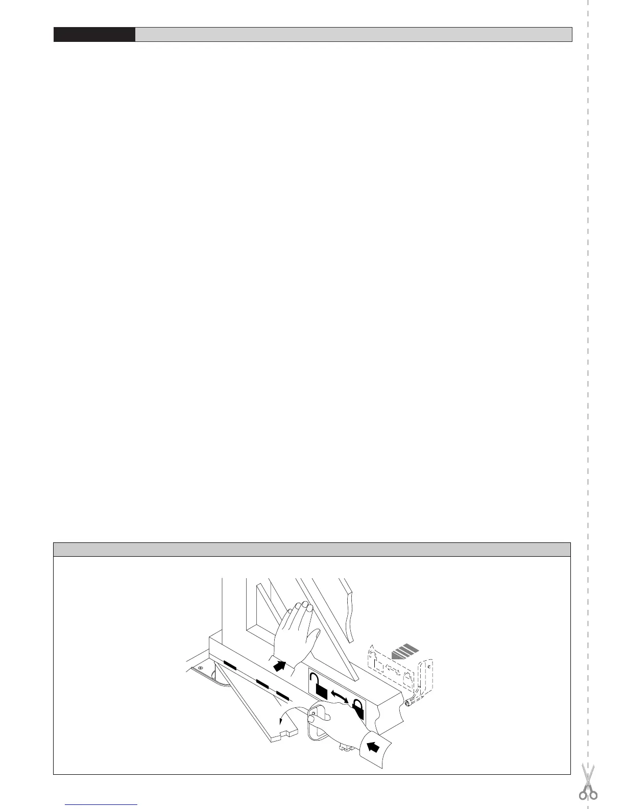 Emergency release is obtained by using the key provided, on the release unit which is located under the gate, on the protruding section of the lever-pivot.