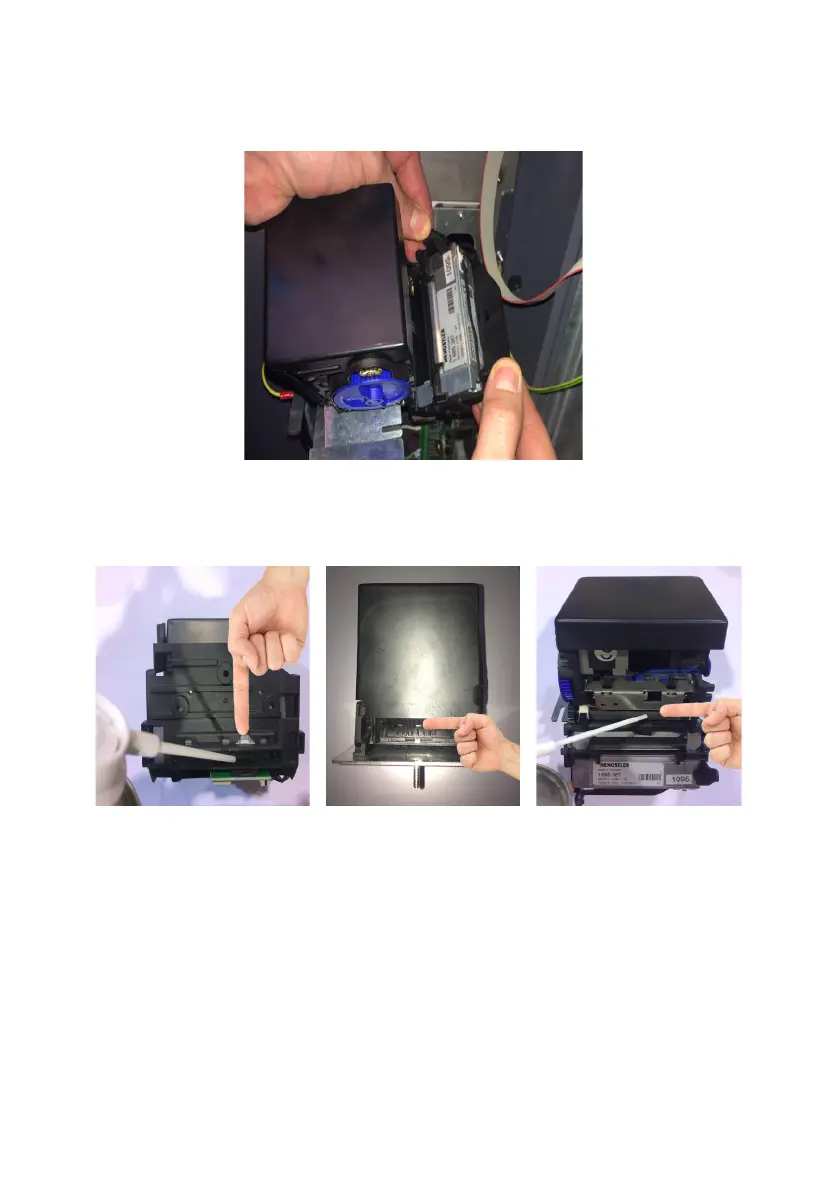 cloth. Act on the two side wings, open the printer and clean the inside of the unit.