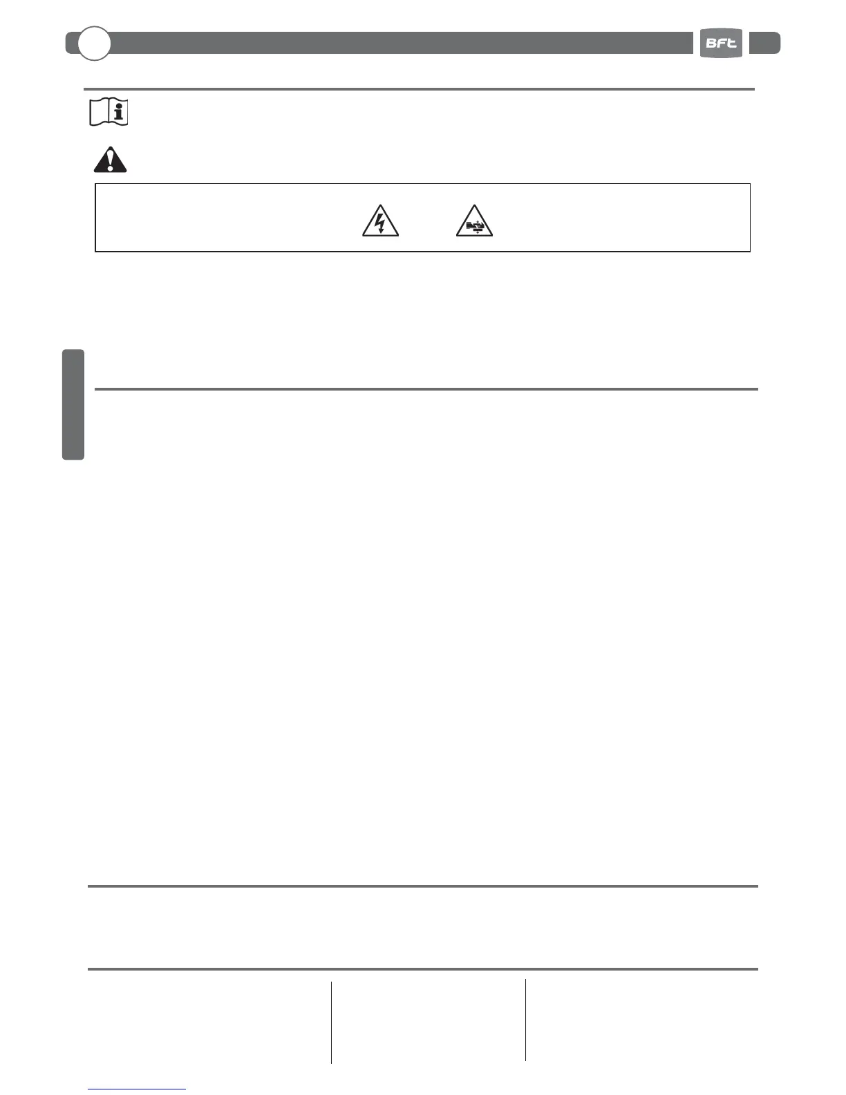 • Fit all the safety devices (photocells, electric edges etc.) which are needed to protect the area from any danger
