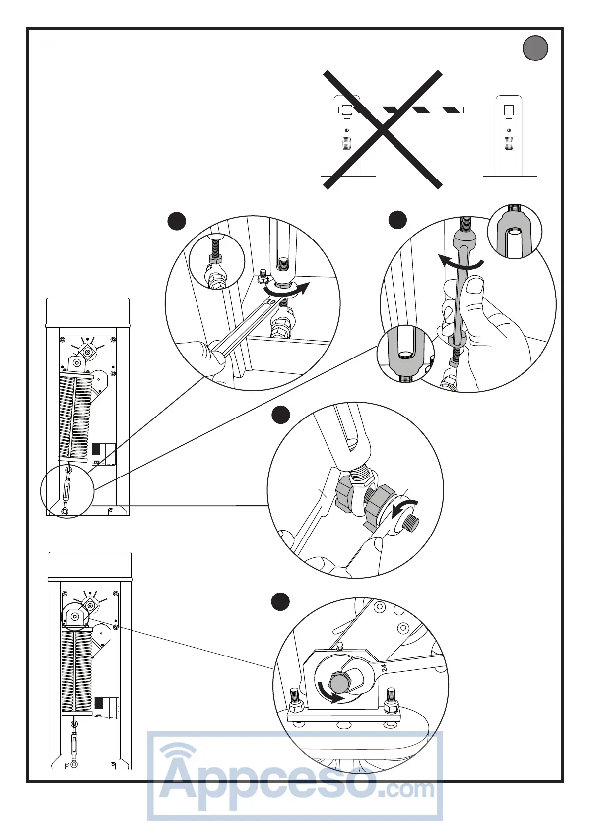 Sicherstellen, dass die Feder nicht gespannt und die Stange nicht montiertist.