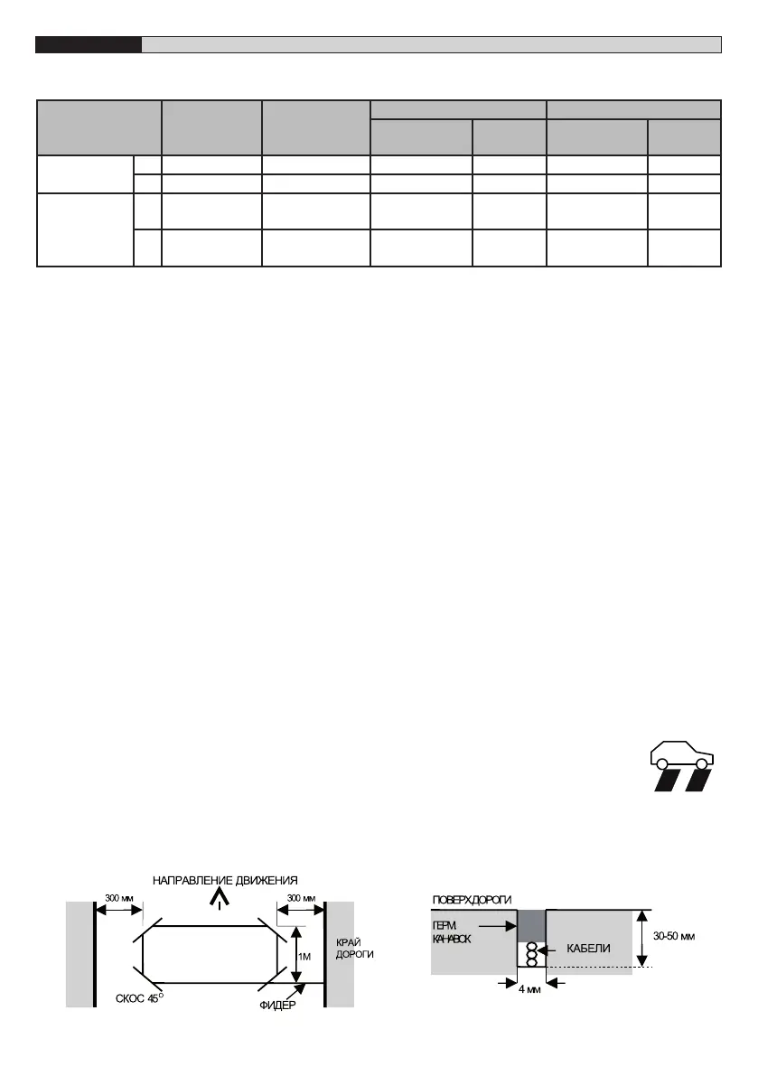 петлями. Для предотвращения неправильной работы детектора петли должны находиться, по крайней