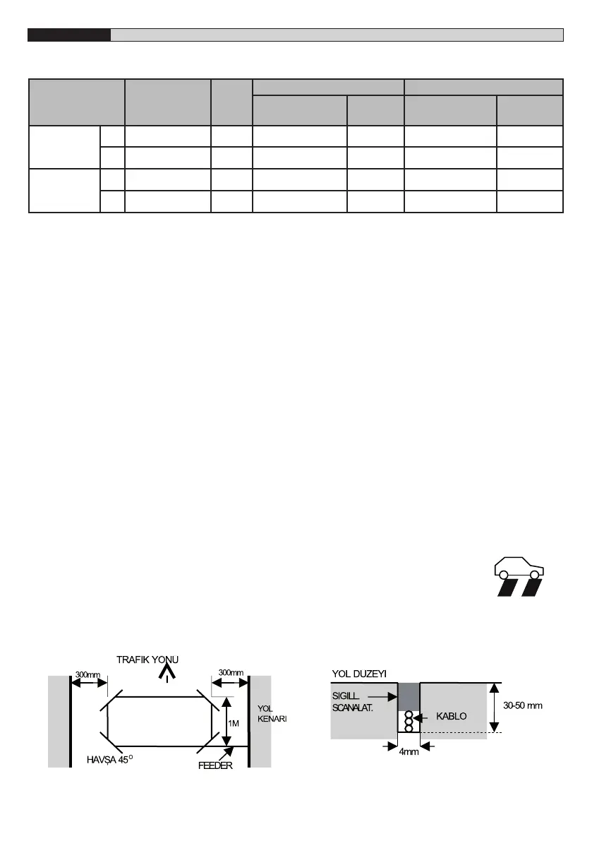 bırakılmış olması gerekir. Genelde döngüde 3 tur kablo kullanılır. Çevresi 10 metreyi aşan büyük döngülerde 2