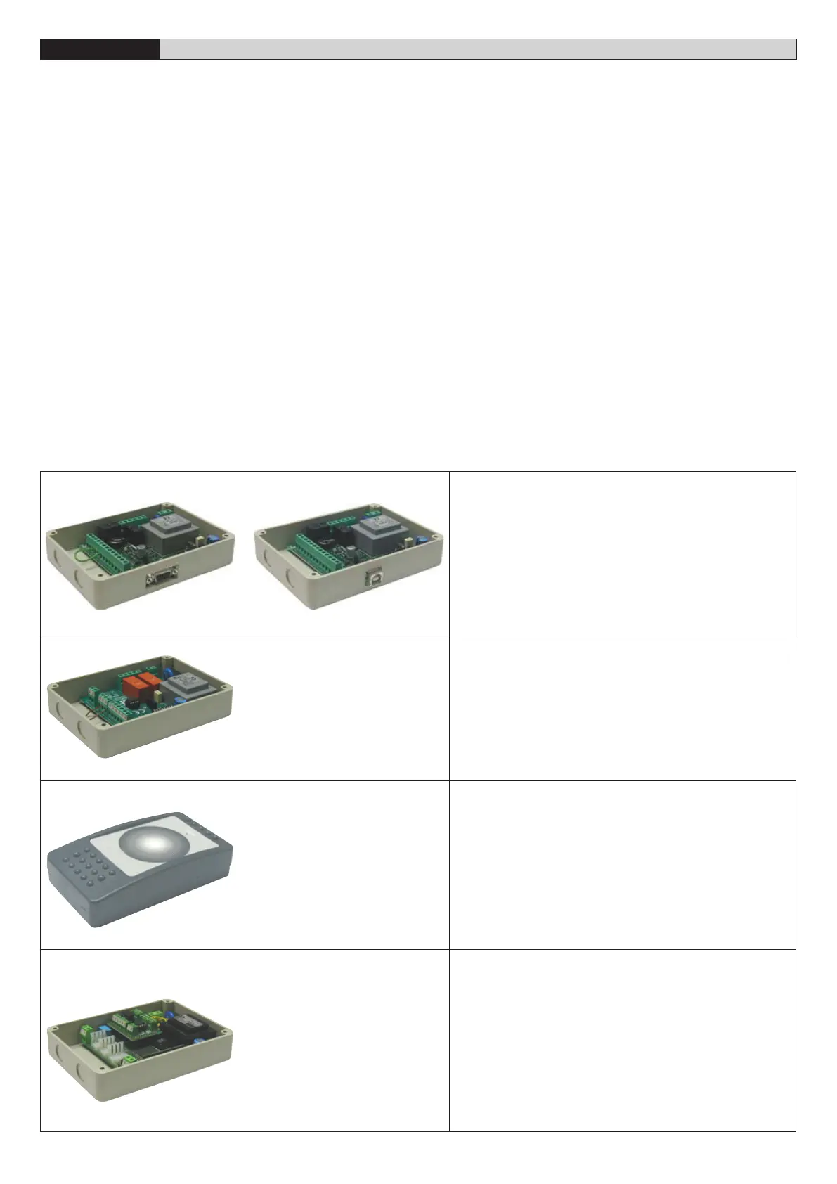 to be controlled and the type of identification devices to be managed. Other important characteristics are the type of serial port (RS 232 or USB) to be used