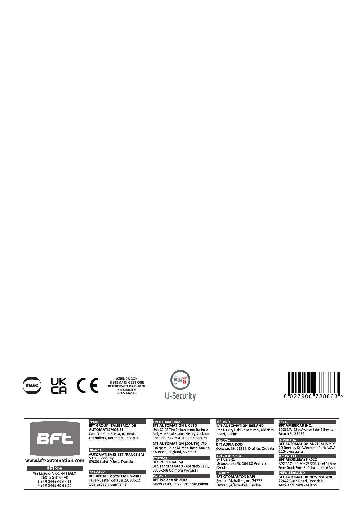 BFT THALIA BT A80 - BFT Company Information; Global Offices and Certifications