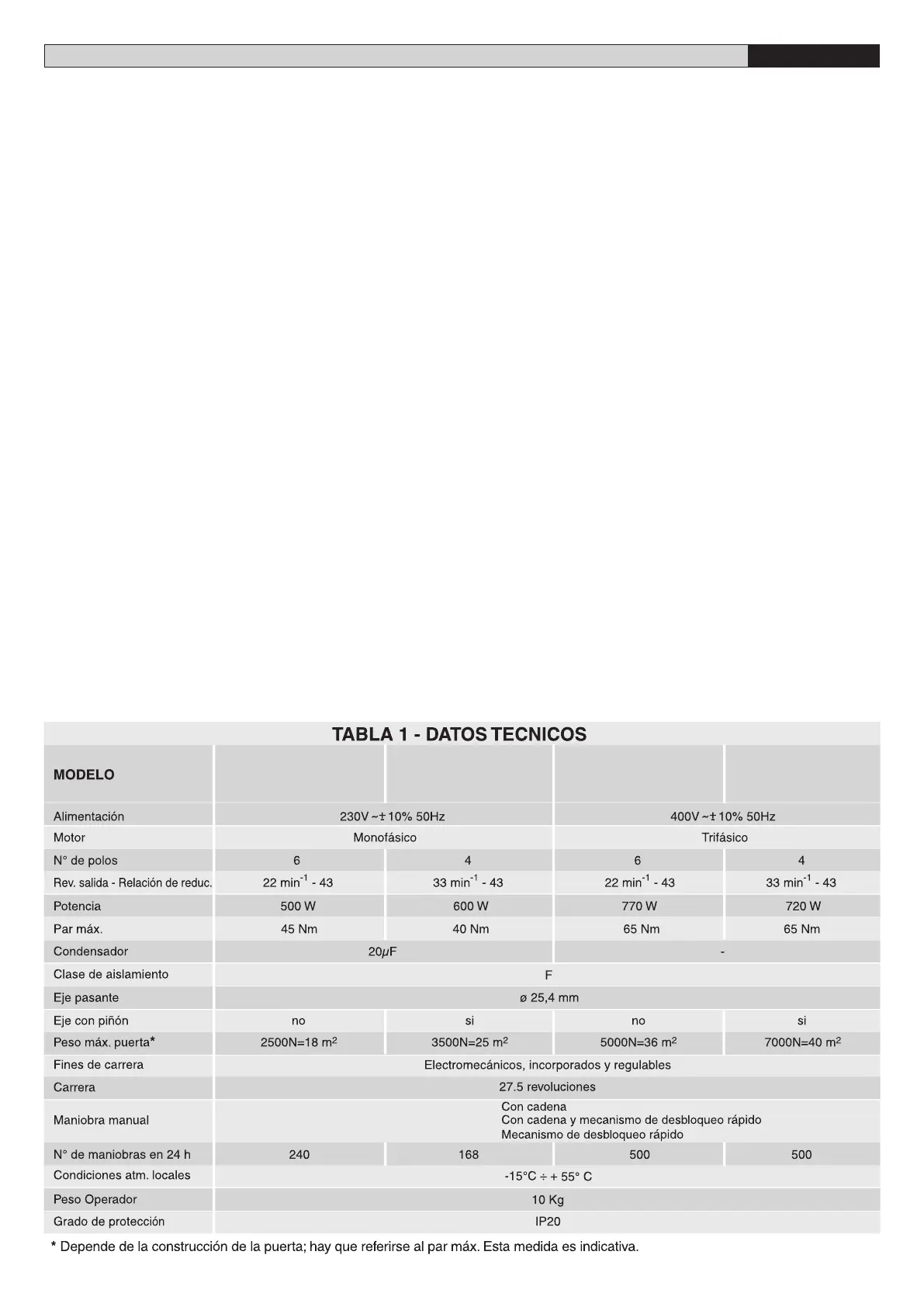 manual. El motor está provisto de freno electromagnético para hacer el