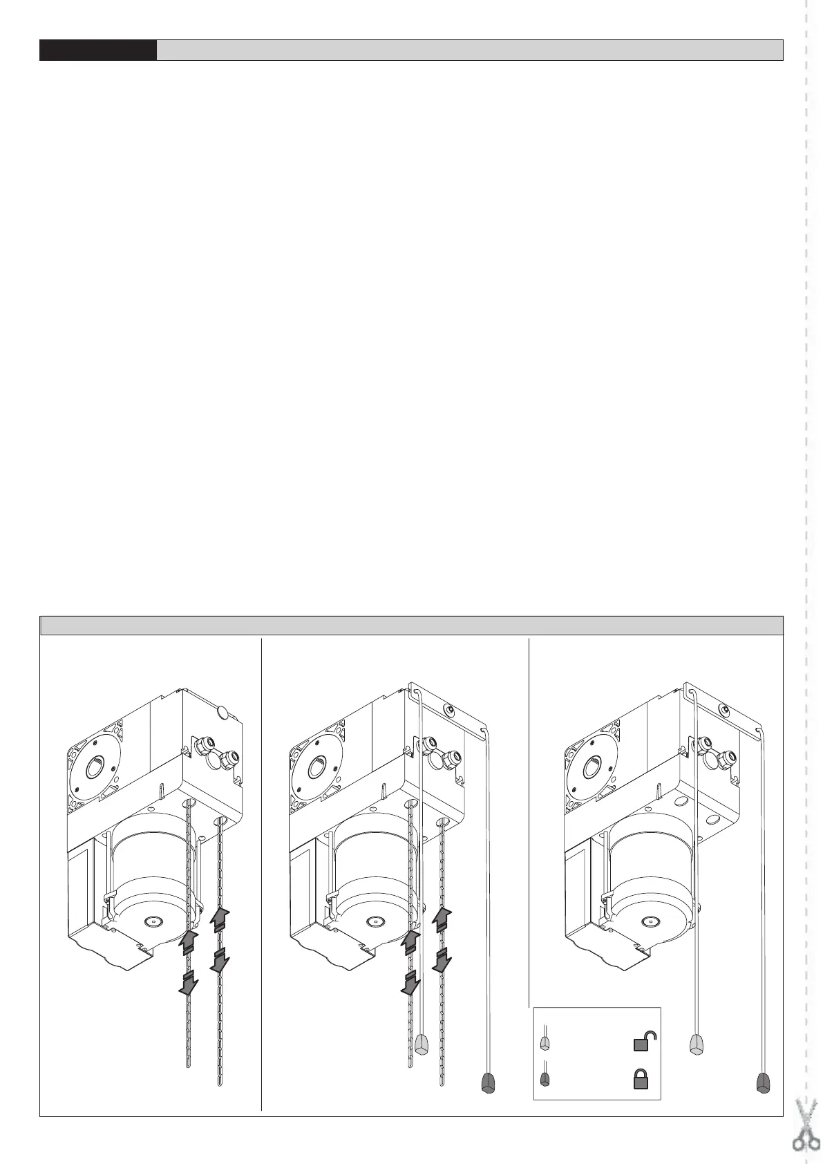 O desbloqueio para a manutenção, activa-se puxando a cordinha com