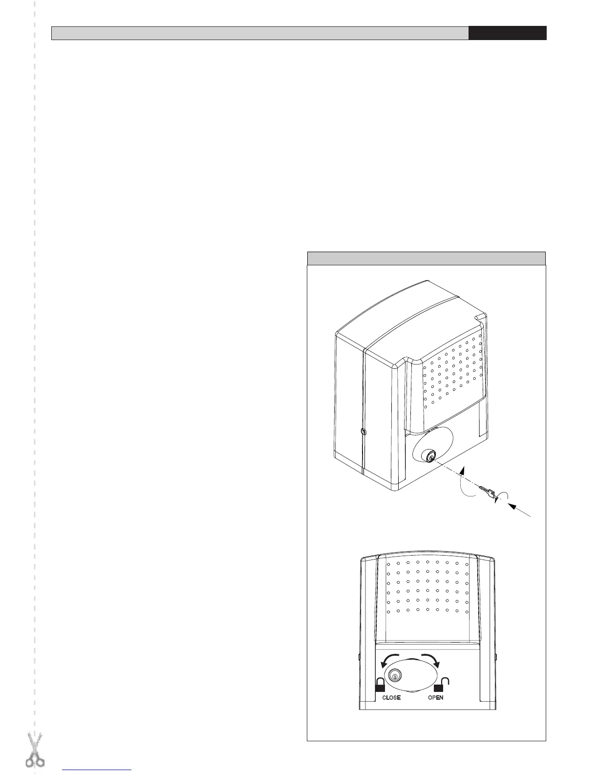 Le déblocage manuel ou d’urgence doit être activé si on doit ouvrir le portail