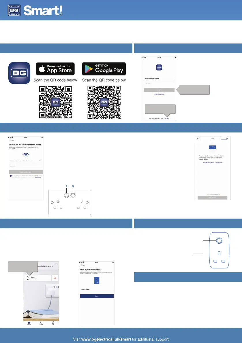 Press and hold button A for 5 seconds. The socket will then enter Wi-Fi configuration mode