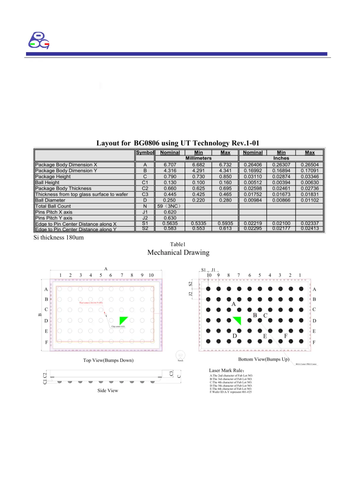 Figure 1 shows BG0836 CSP package diagram, which defines mechanical size and the