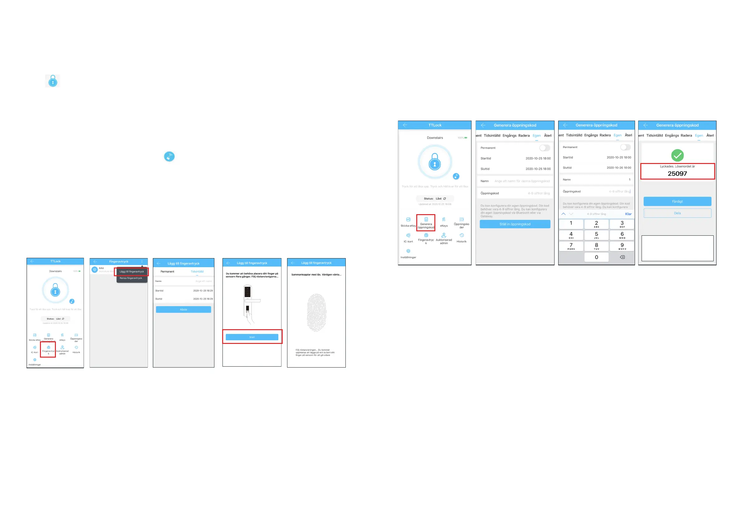 To be able to unlock with ngerprints, it must rst be added. For this to work, the phone and lock need