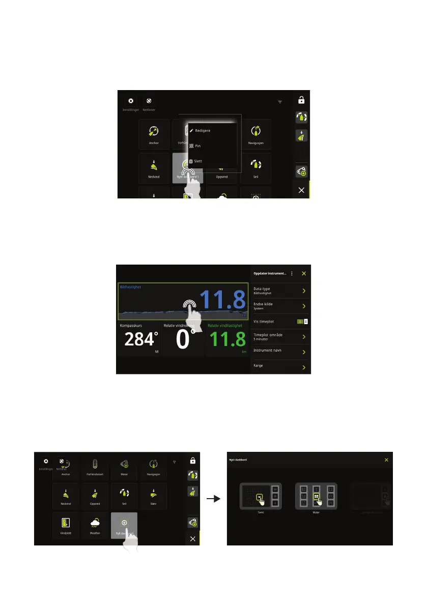 Trykk på og hold nede på instrumentbordet du vil redigere eller slette, på hjem-skjermen.