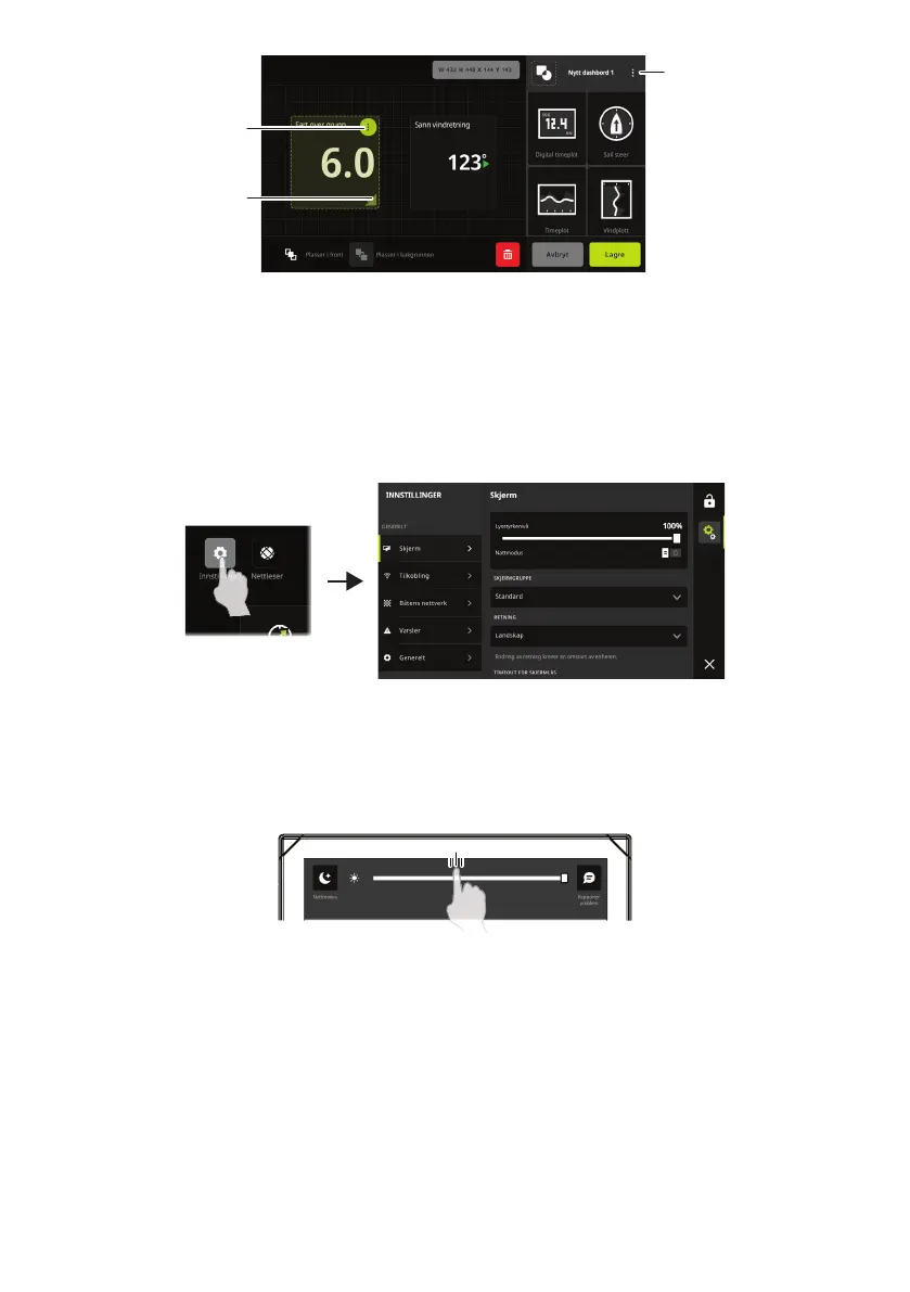 Bruk menyen for hurtigtilgang til å endre lysstyrken på skjermen, aktivere natt-/dagmodus