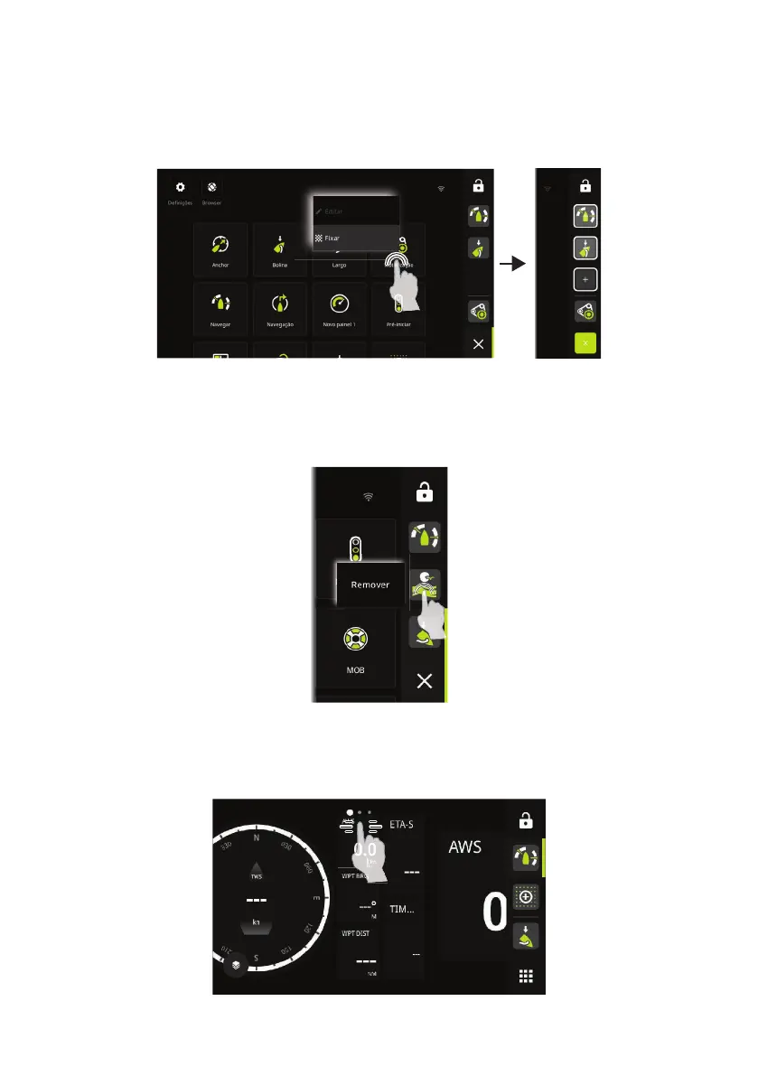 No ecrã inicial, mantenha premido o painel que pretende xar à barra do painel. Pode xar o