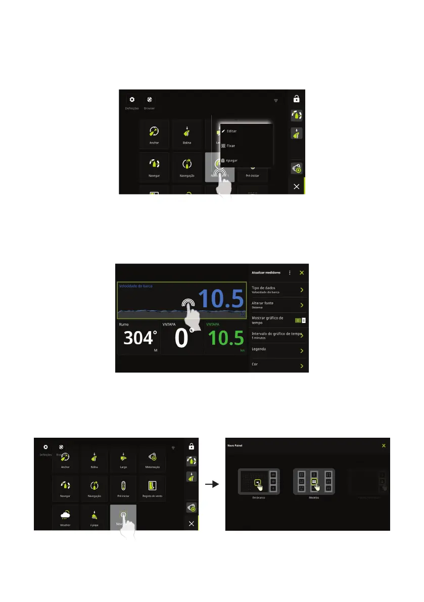 No ecrã inicial, mantenha premido o painel que pretende editar ou eliminar.