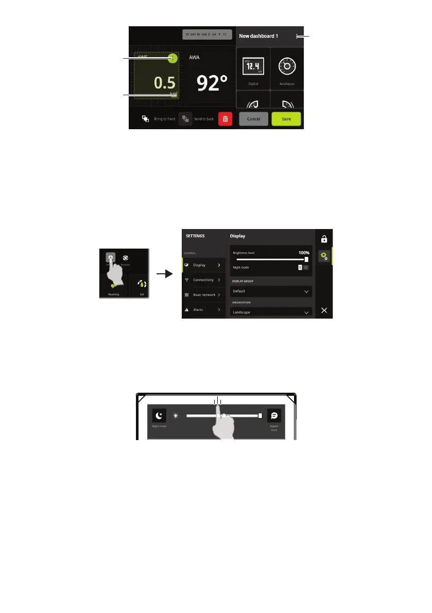 Use the Quick access menu to change the screen brightness, activate night/day mode, or to