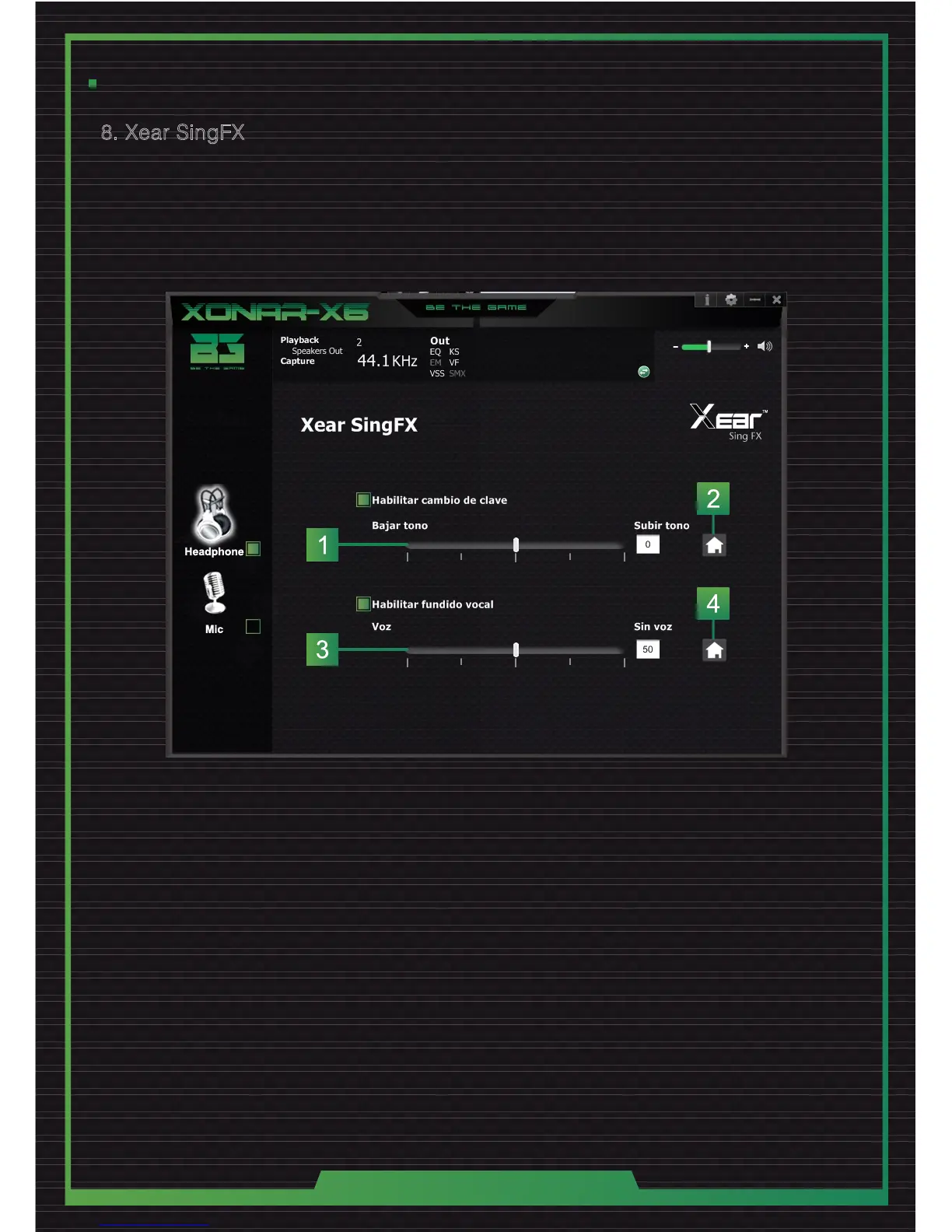 1. Cambia el tono de la fuente de sonido eligiendo entre 5 tonos diferentes. Desvanece voces hasta el