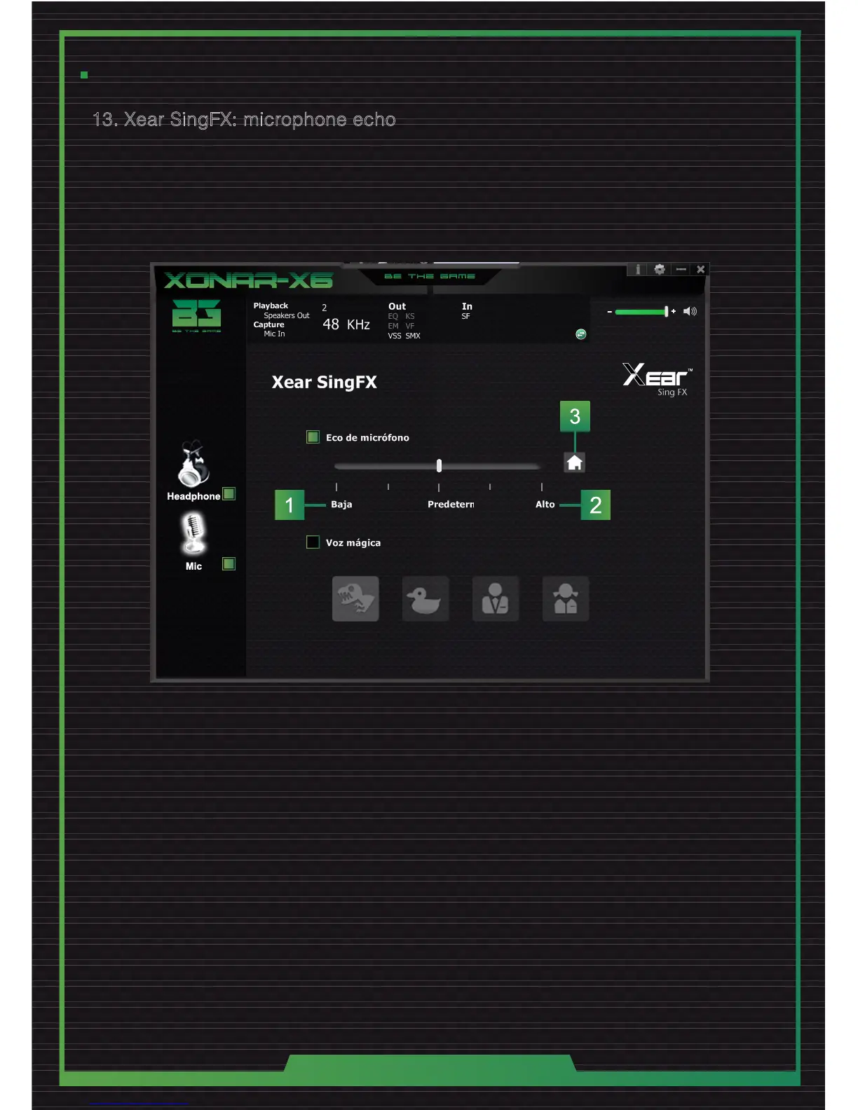 1. Modula la profundidad de eco del micrófono en cinco niveles diferentes.