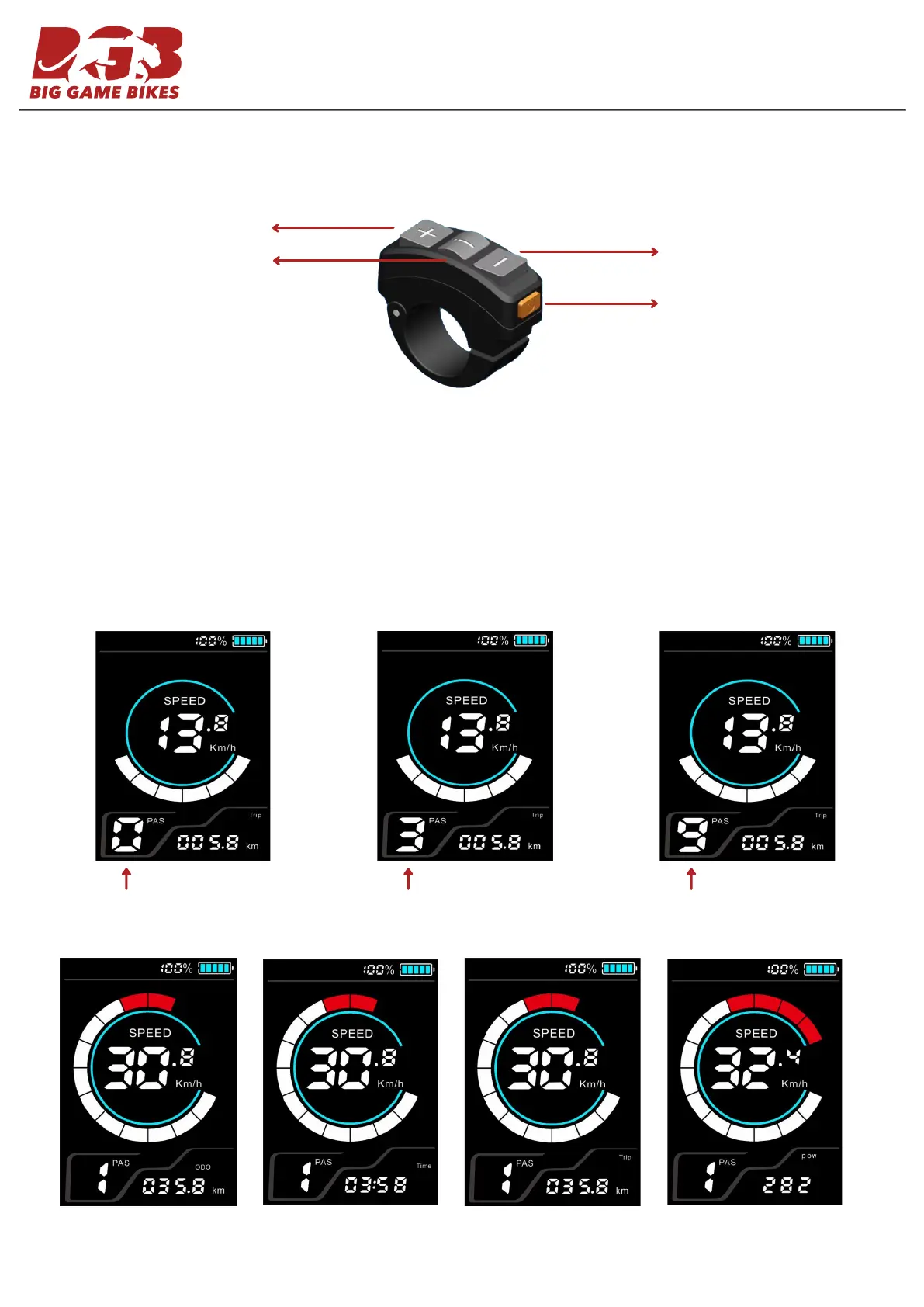 PAS Levels: Pressing the PLUS button or MINUS button will increase or decrease the level of assistance. The lowest