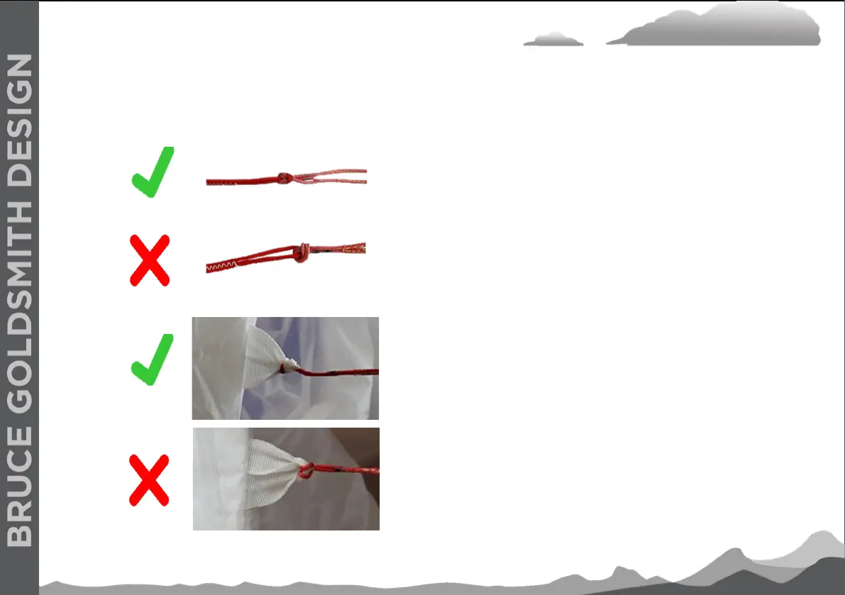 All the lines are connected to other lines or to tabs with lark’s foot junctions. Make sure that these are joined correctly