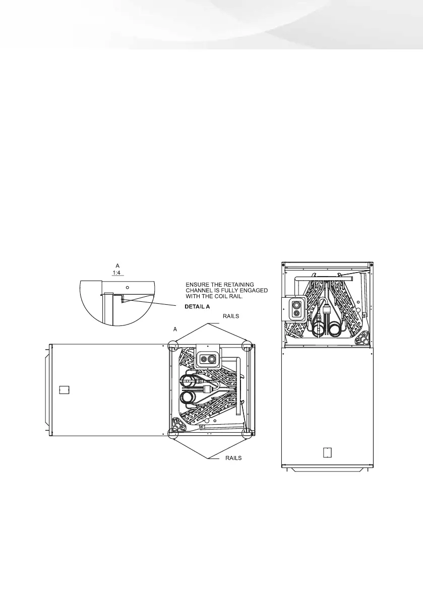 • Reinstall the indoor coil 180° from original position. Ensure the retaining channel is fully
