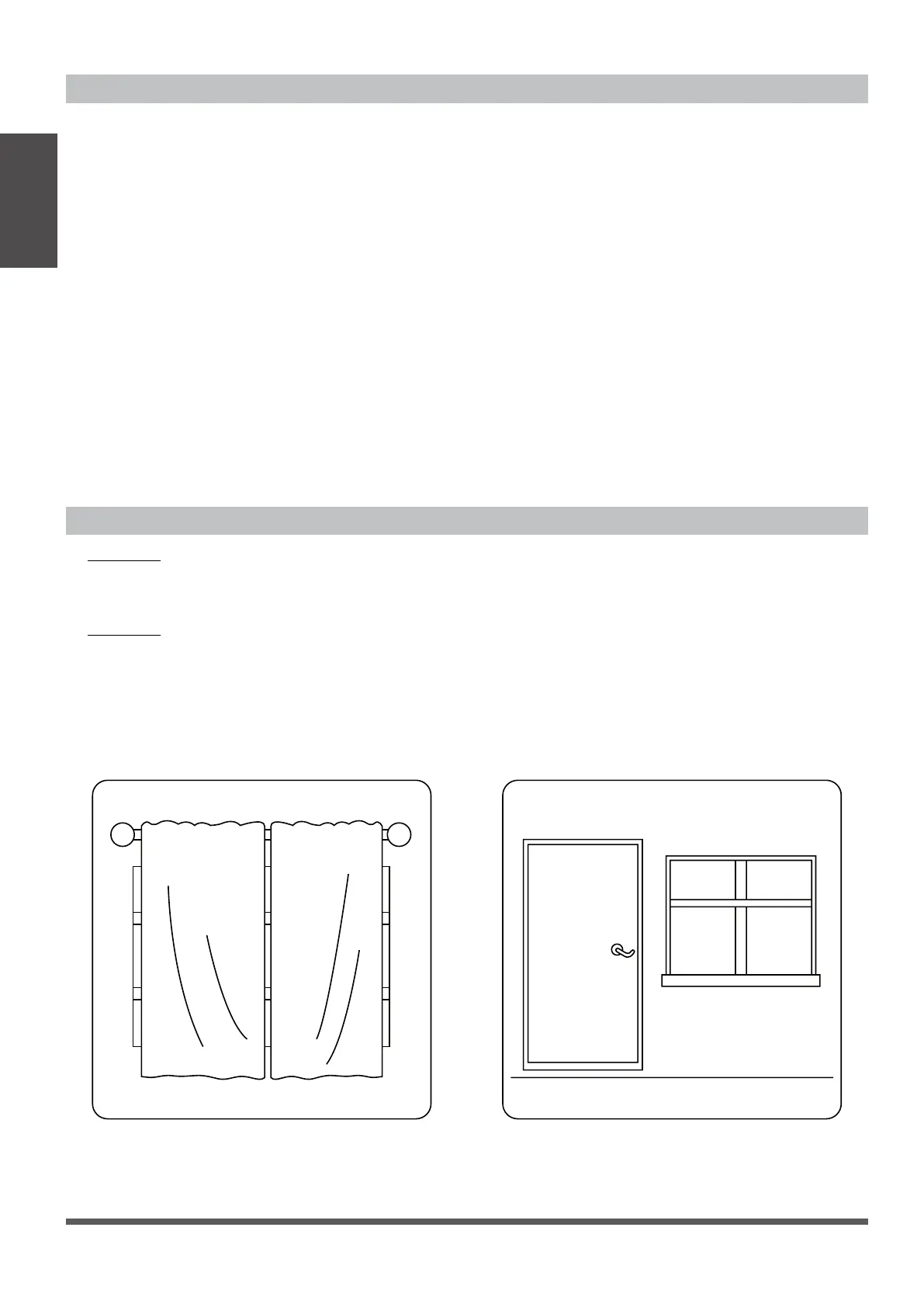 • Doors and windows should be kept closed to keep cool or warm air in the room.