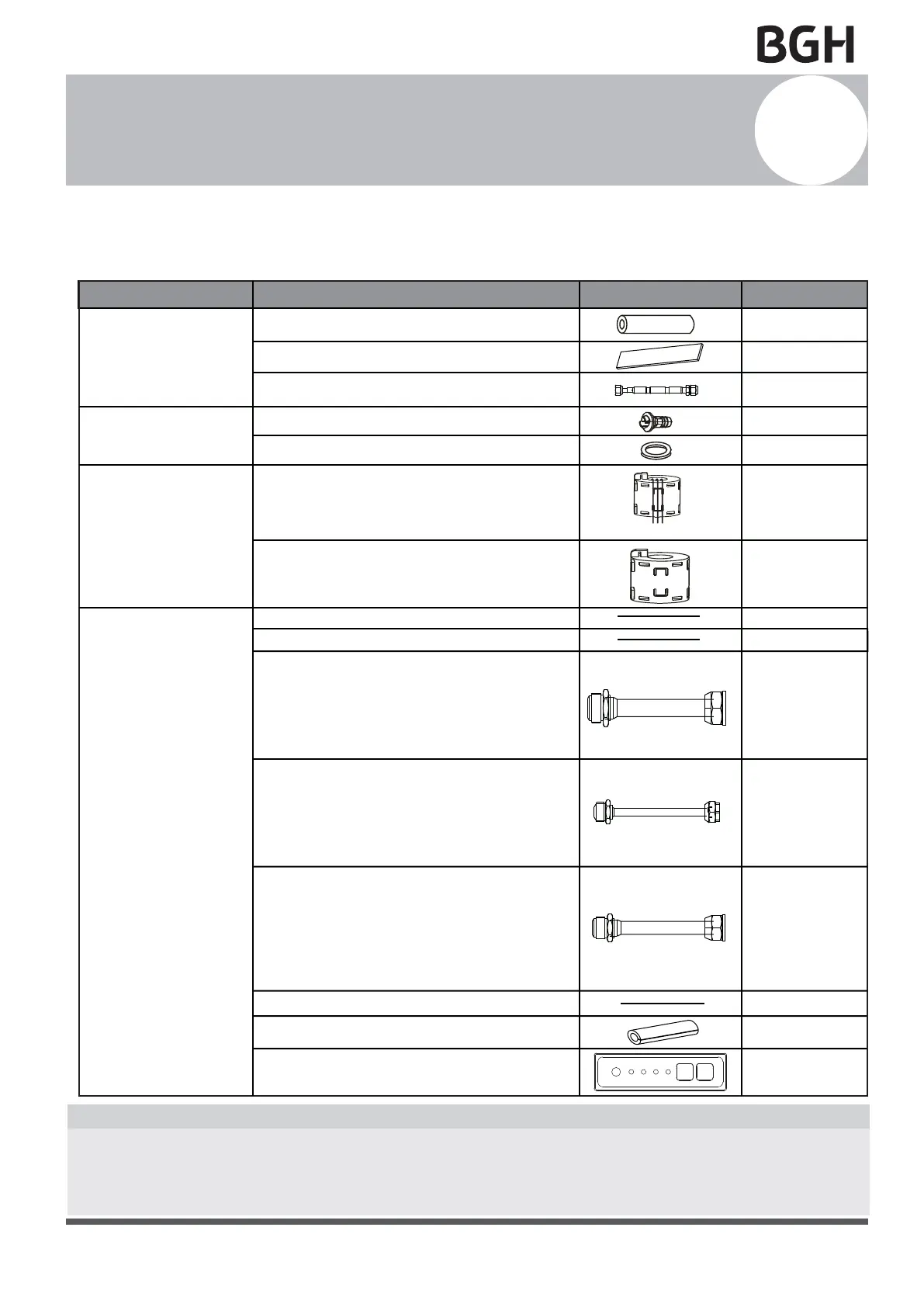 The air conditioning system comes with the following accessories. Use all of the installation parts