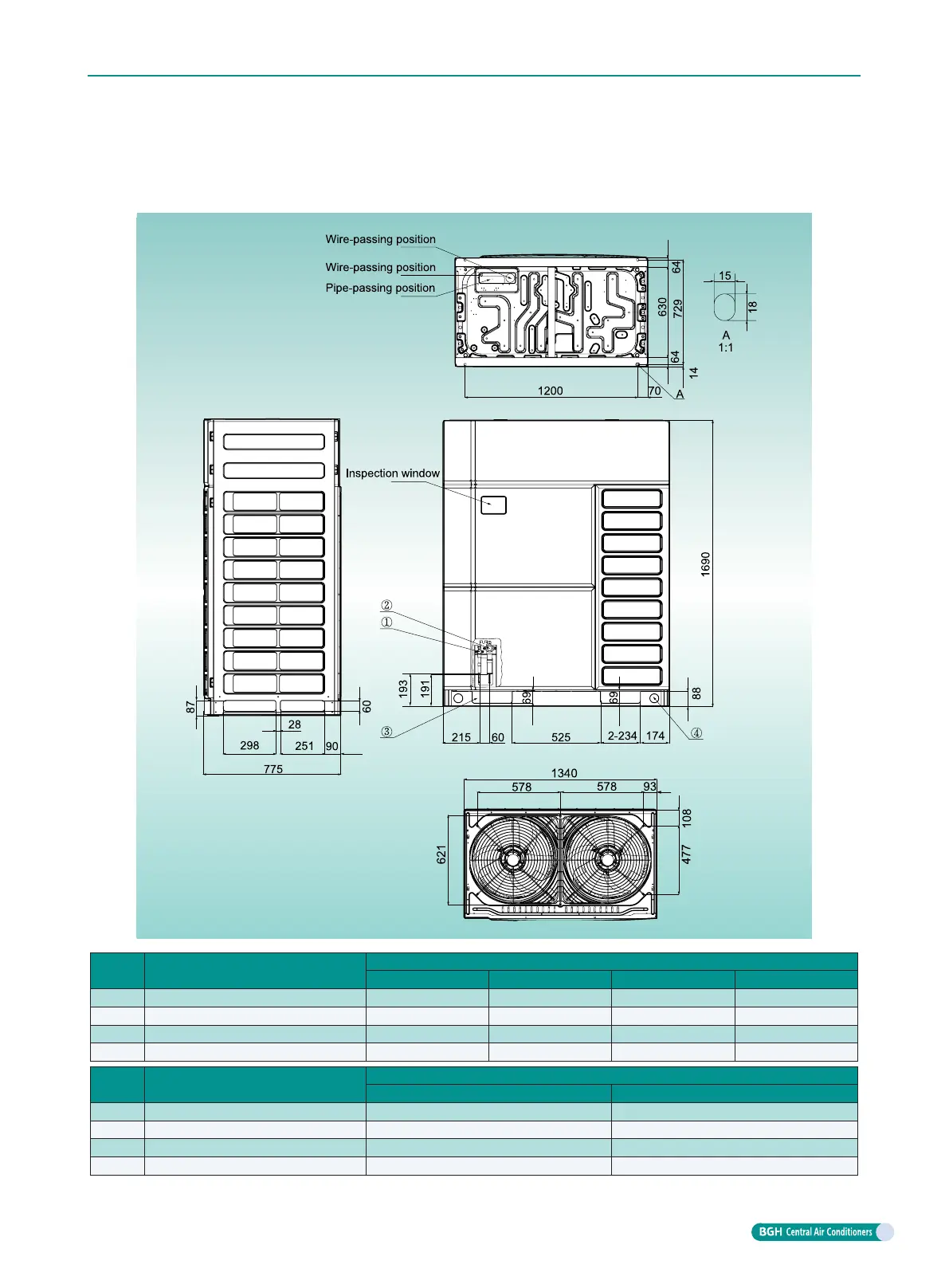 Pipe and wiring crossing hole(L×W) 234×69 234×69 234×69 234×69