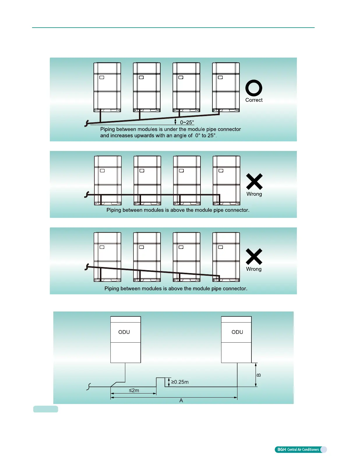 Piping fall and length among ODUs conforms to the following situations.