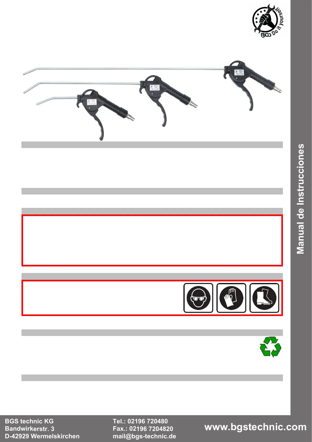 Este producto está diseñado para soplar con aire comprimido con una presión máxima de 6,2 bar.