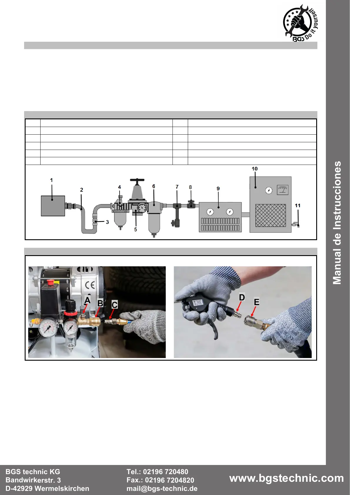 comprimido (E) en el otro extremo de la manguera (Fig. 2).
