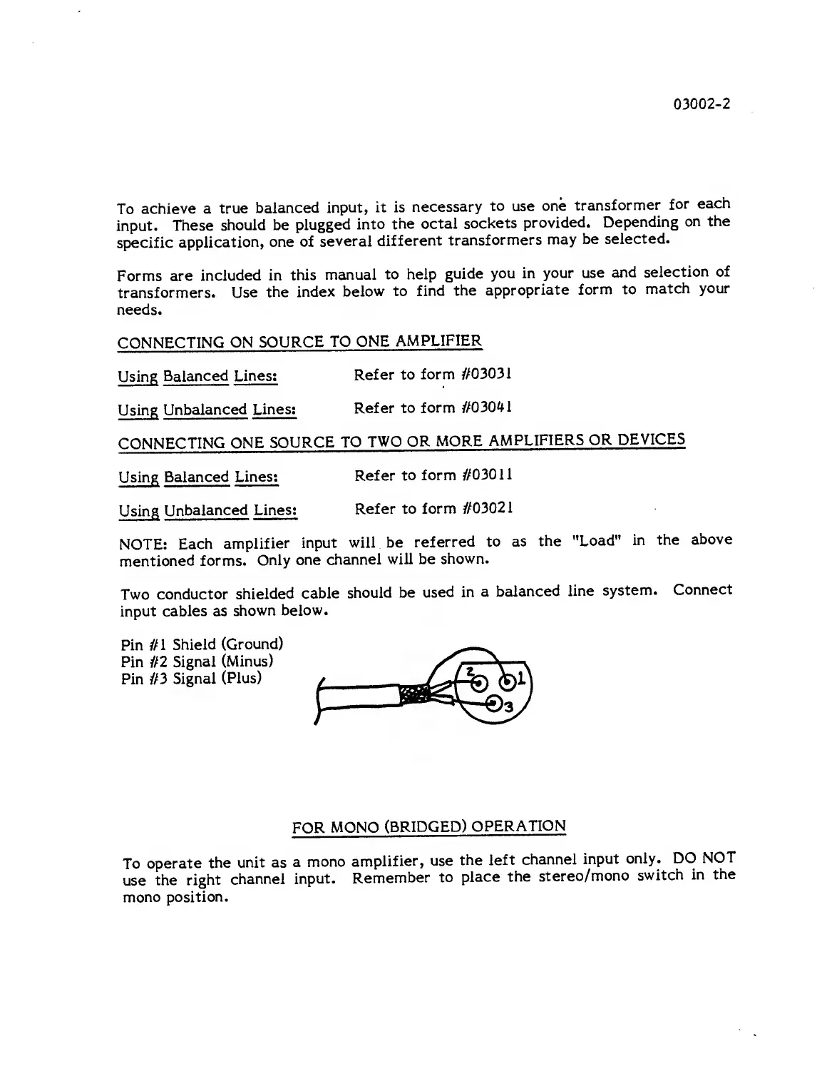 BGW 150 - Balanced Input Transformers; Connecting Multiple Units; Mono (Bridged) Operation Input