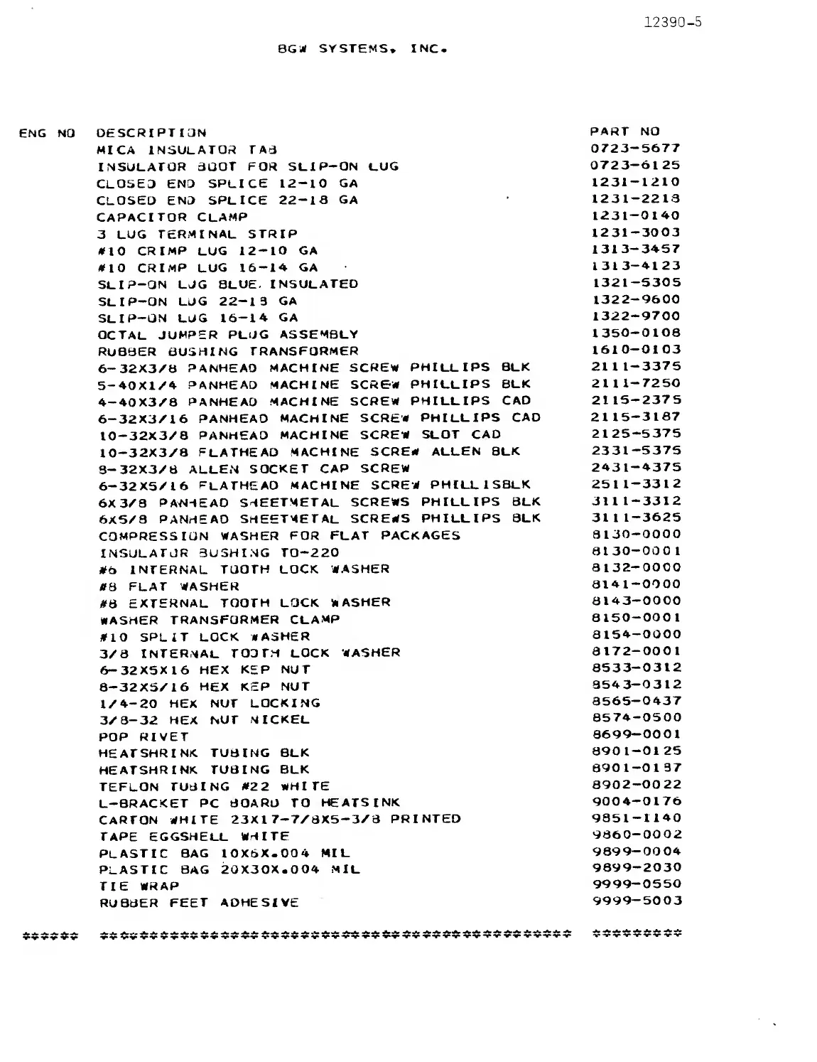 BGW 150 - Parts List - Hardware and Fasteners; Hardware and Fasteners