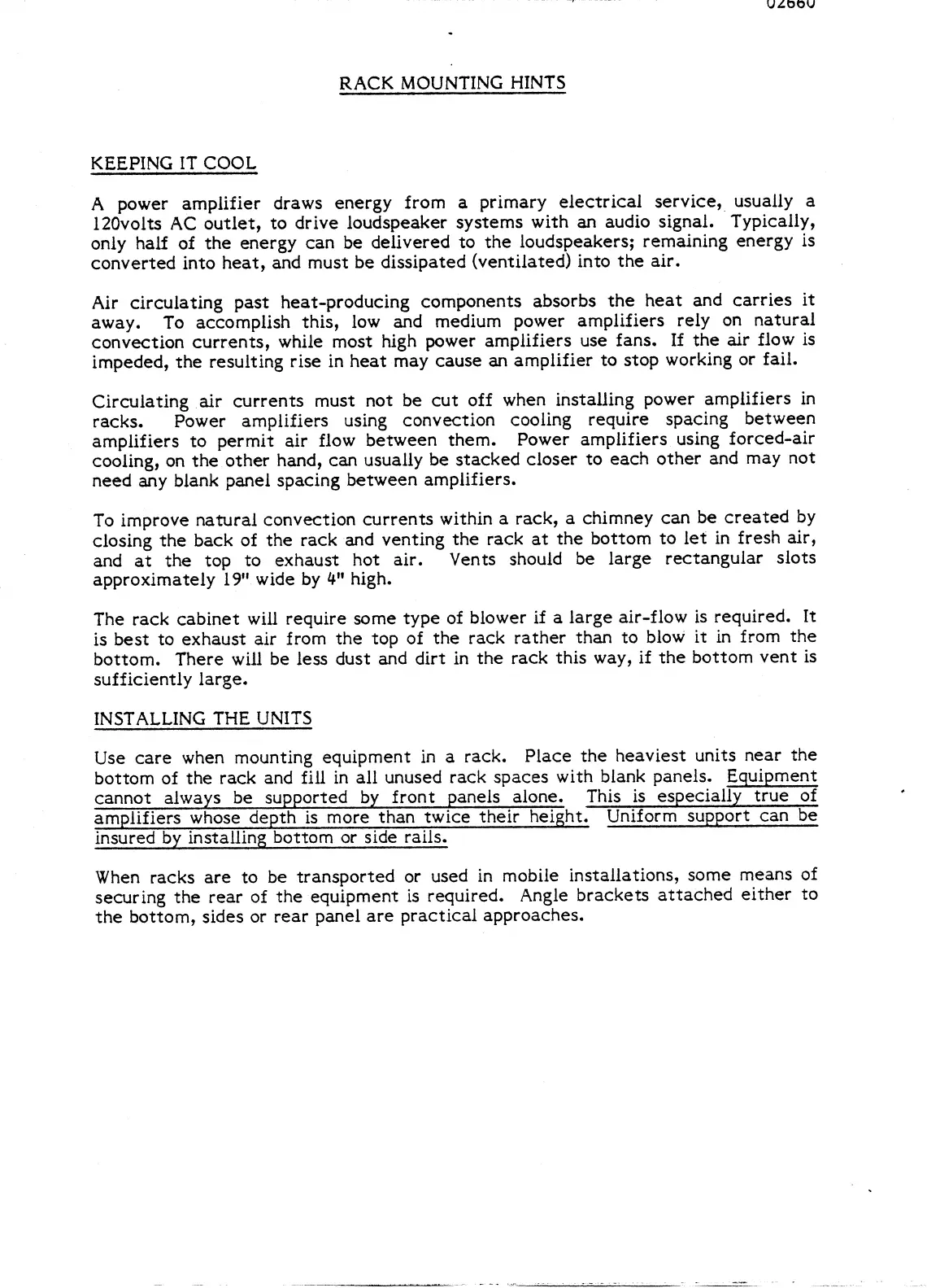 BGW 750E - Rack Mounting Hints