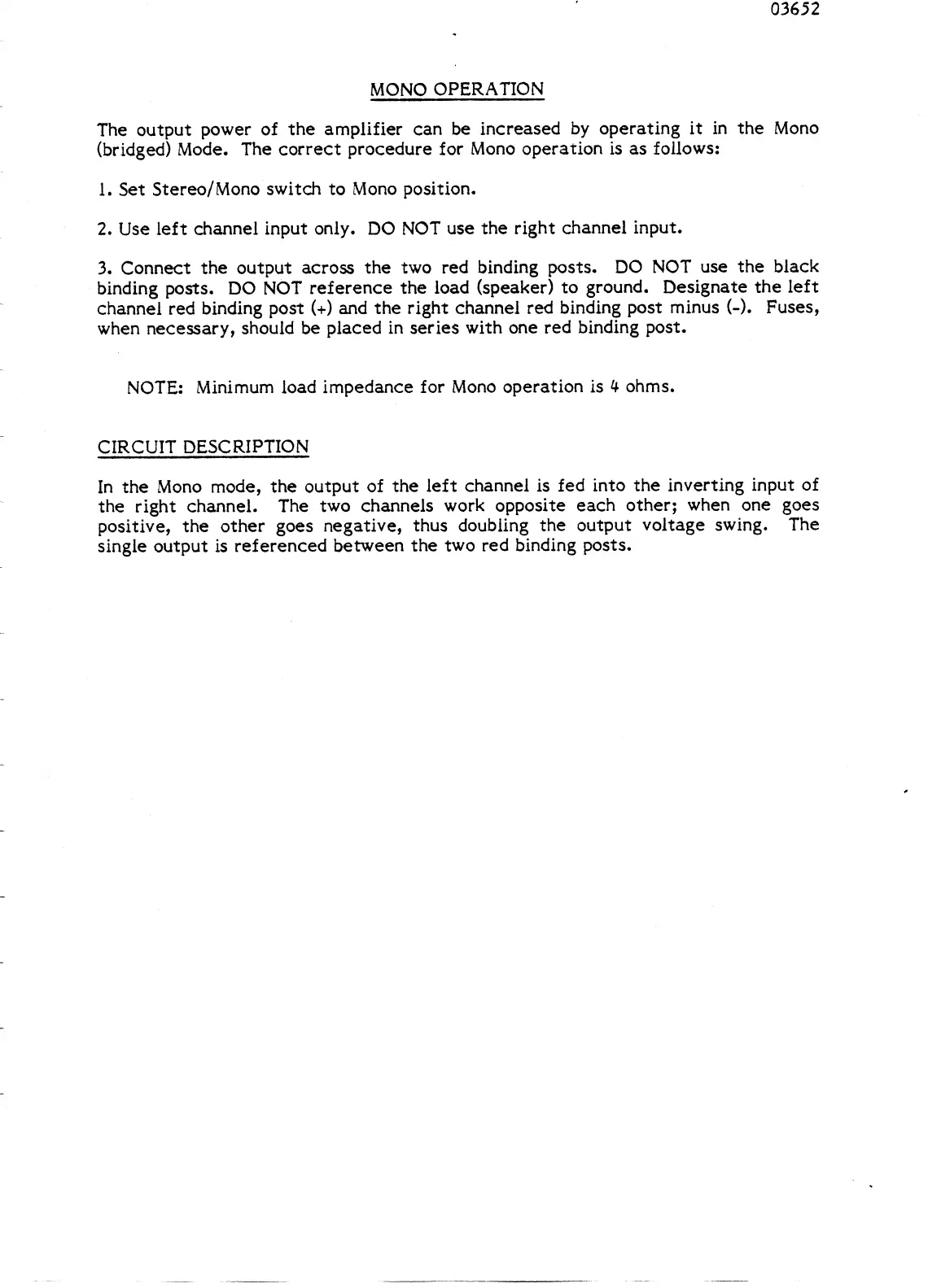 BGW 750E - Mono Operation Mode; Bridging for Increased Power