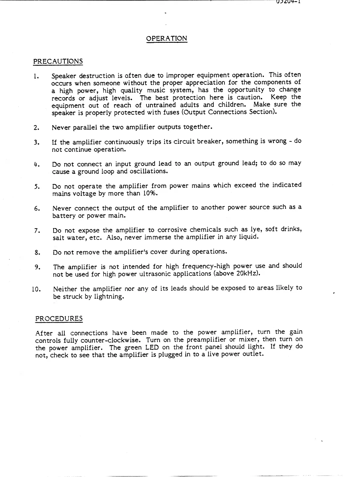 BGW 750E - Operating Procedures; Safety Precautions and Startup