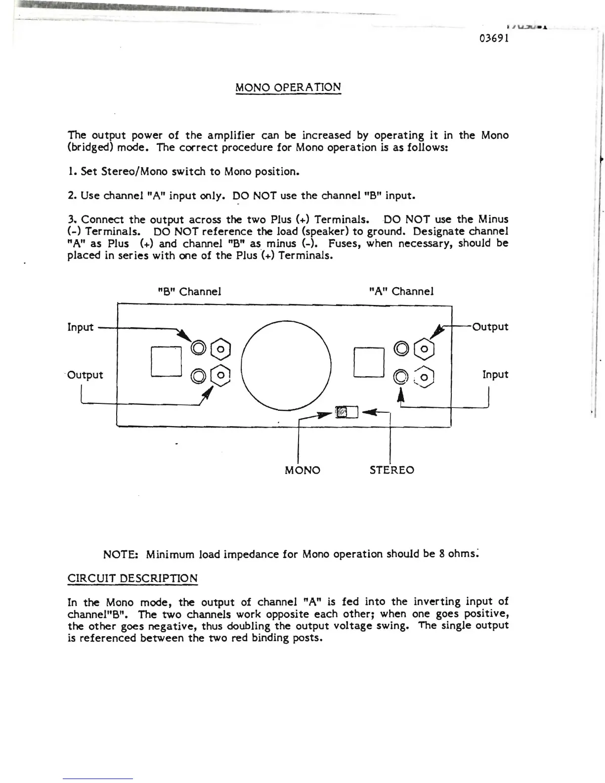 BGW 8000 - Mono Operation; Mono Operation Procedure and Circuit Function