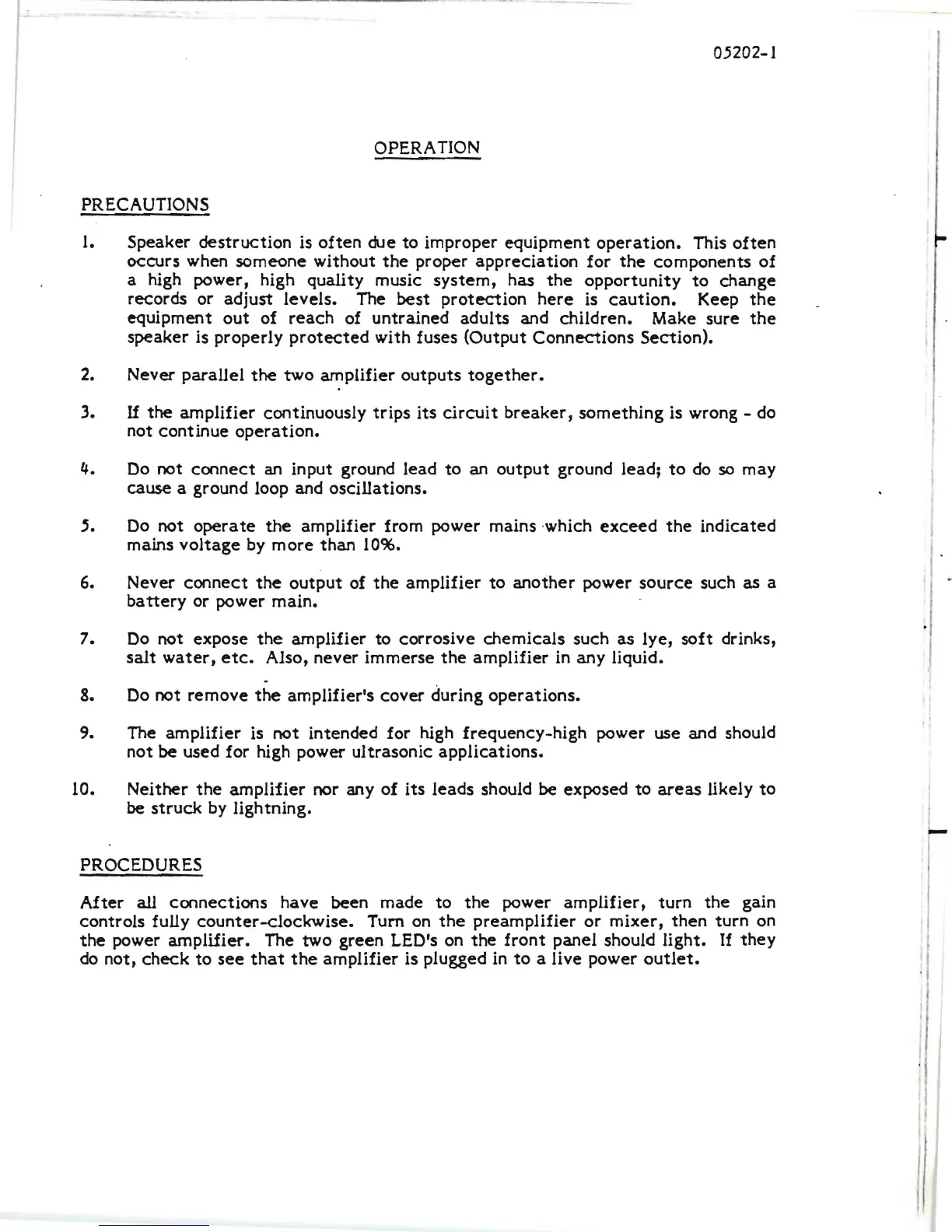 BGW 8000 - Operating the Amplifier; Operation Precautions and Procedures