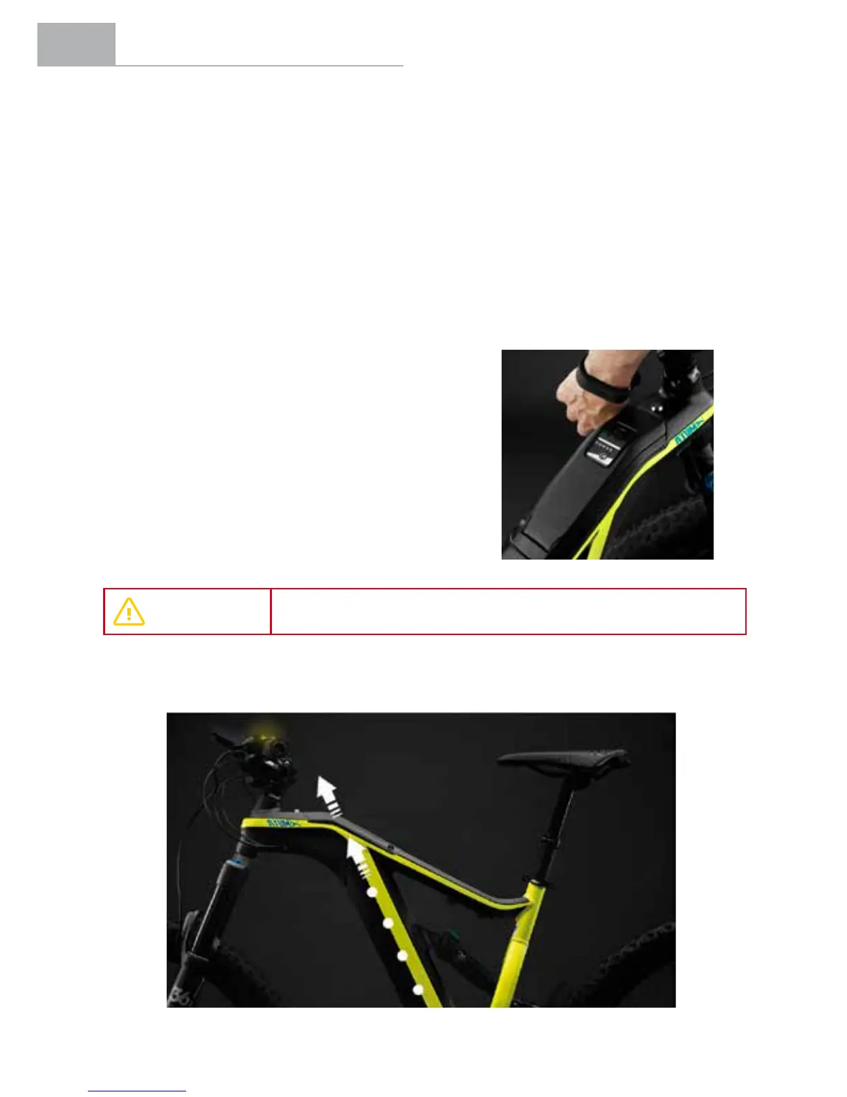 Après ouverture du levier, l'utilisateur peut retirer la batterie en tirant dessus dans le sens