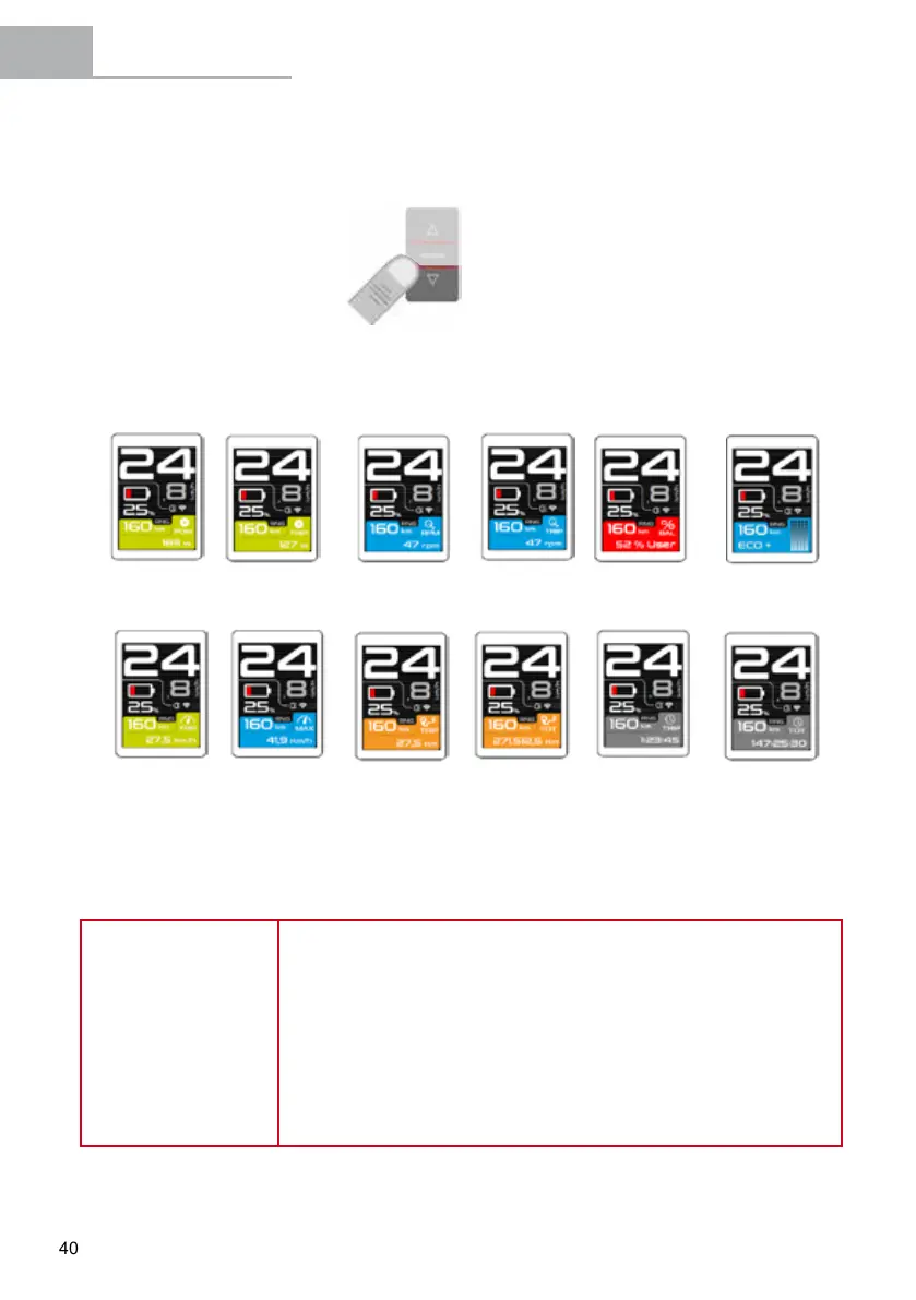 • Battery with charge of 1-5%: No pedal assistance mode is available