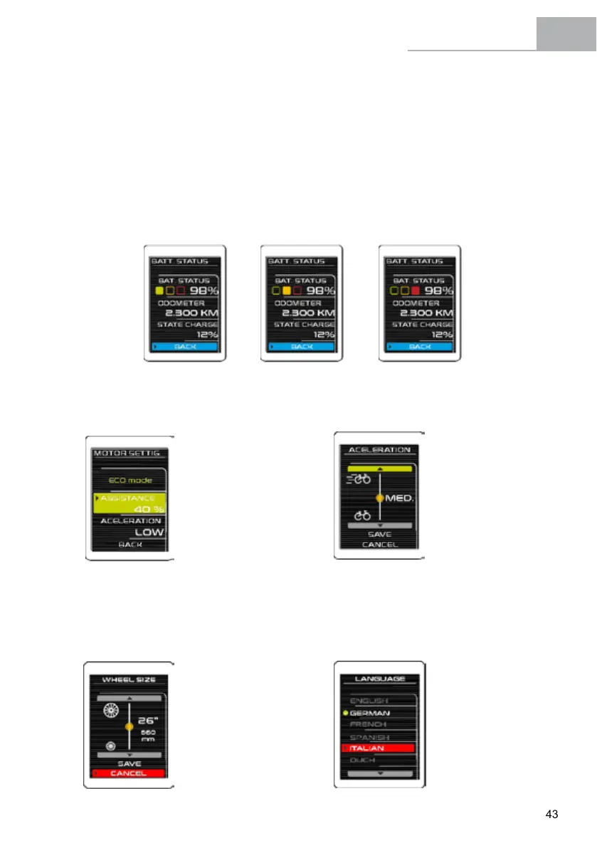 On this menu, the user can manage the motor's performance for each assistance mode.