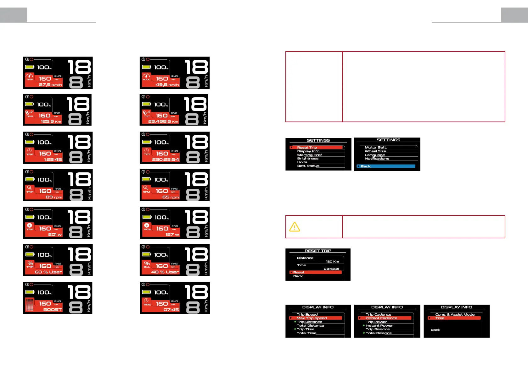 botón POWER, se varía la información de la pantalla según la selección previa realizada en el menú de “Ajustes”: